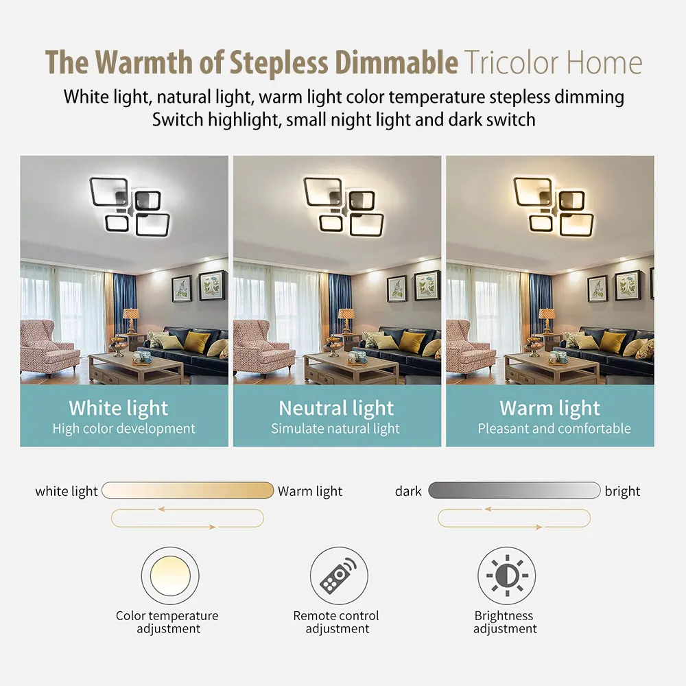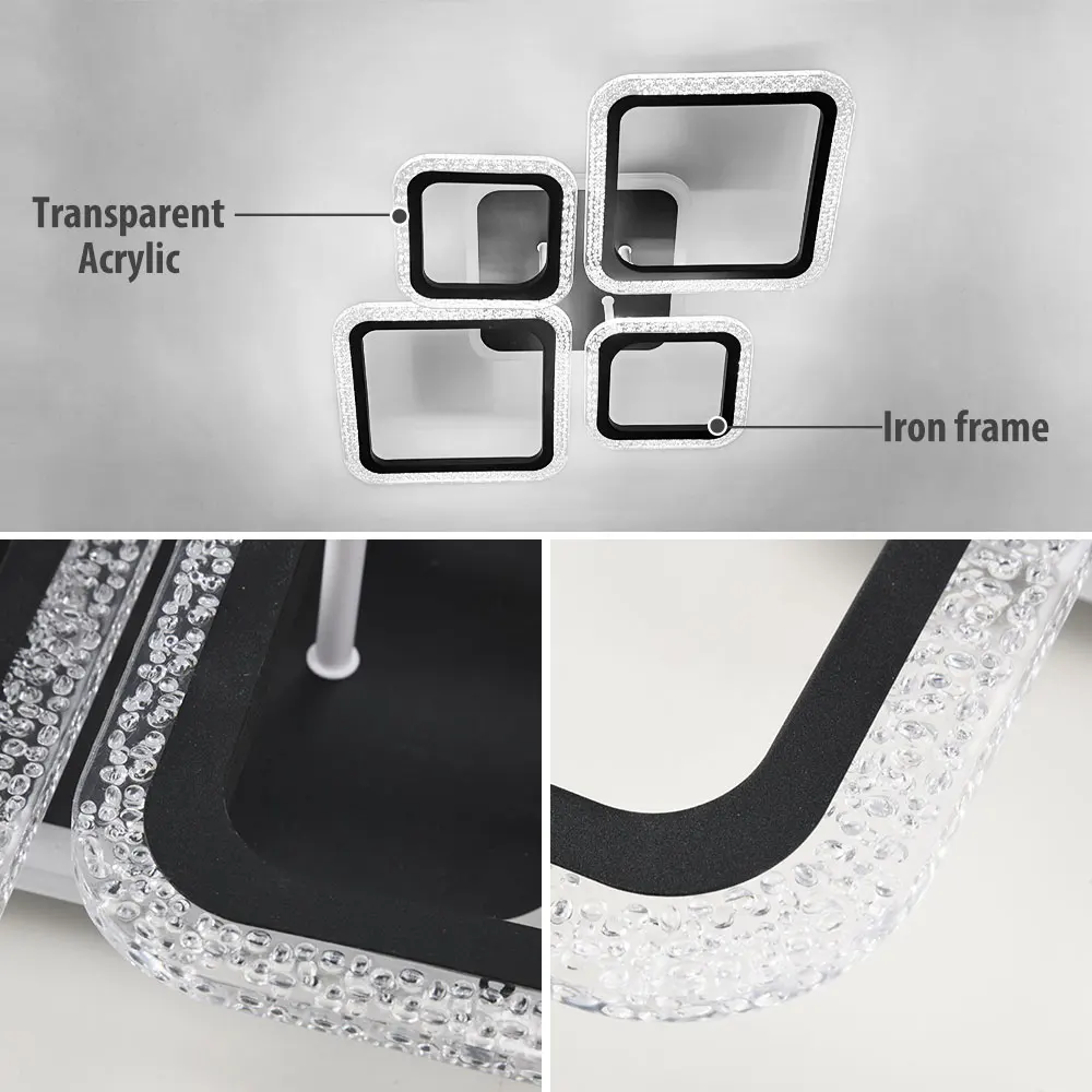 JACKSUN Modern Black Square Acrylic LED Ceiling Lights Dimmable with Remote Control 4 Rings 52cm Ceiling Lamp for Living Room