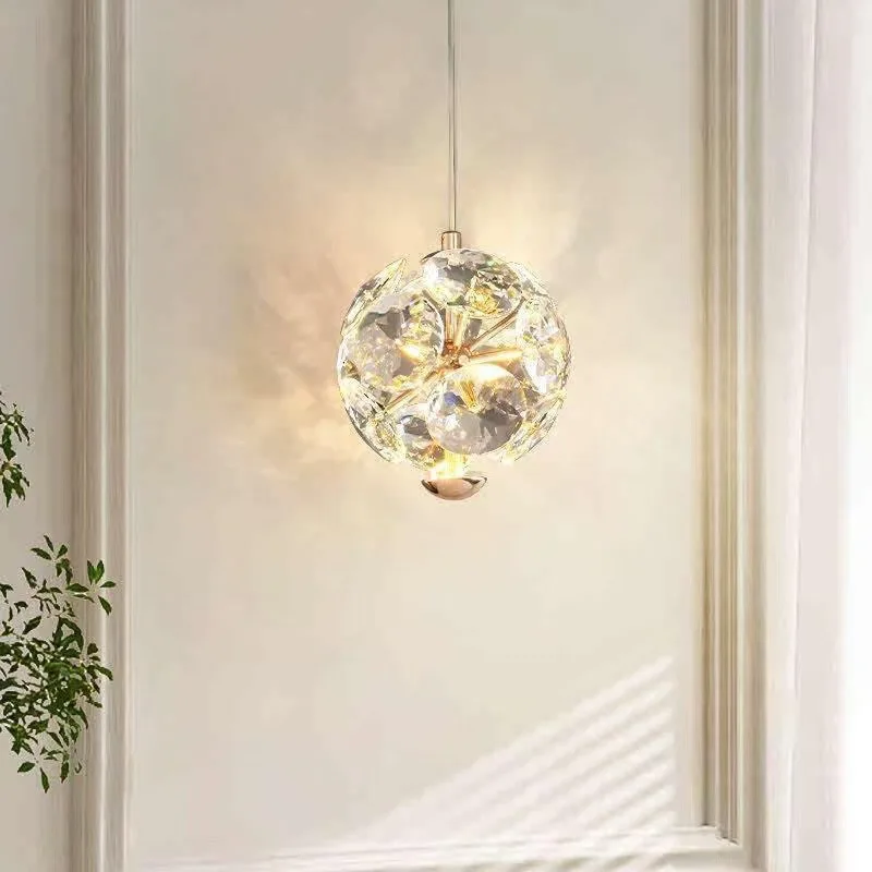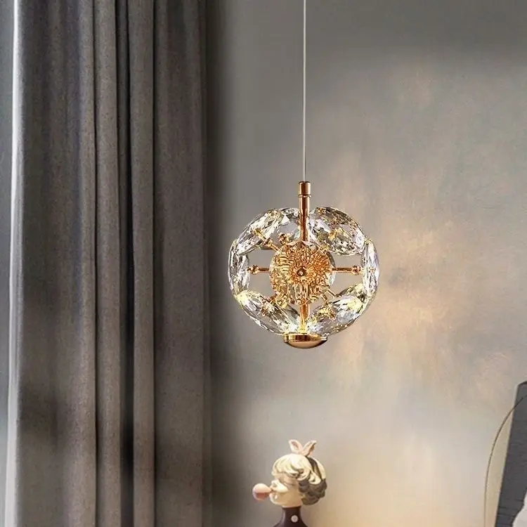JACKSUN New Luxury Crystal Chandelier Modern Master Bedroom Middle LED Gold Hanging Pendant Light TV Background Wall Bedside