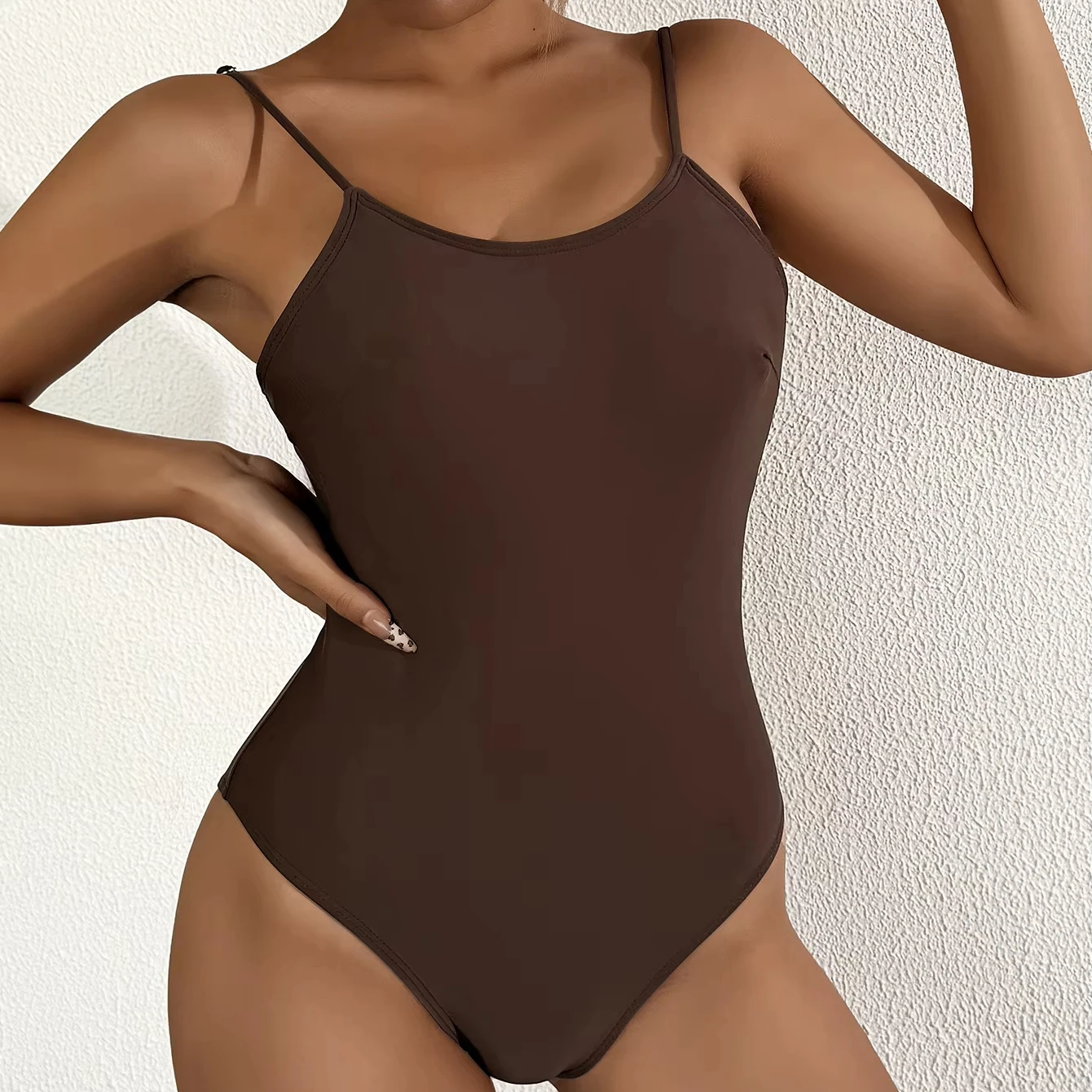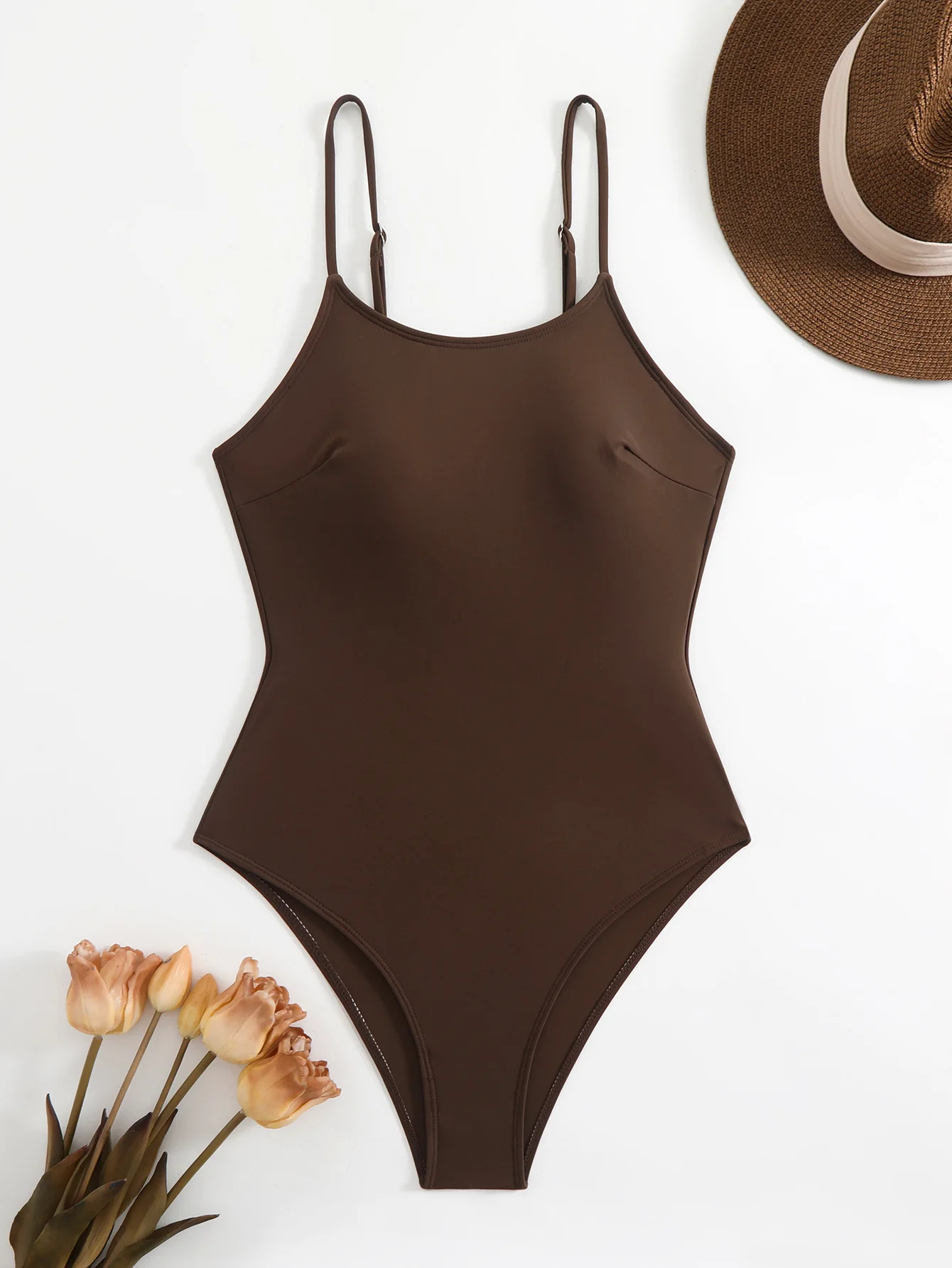 Sexy Solid Color One-Piece Swimsuit for Women with Scoop Neckline High Cut Leg Eco-Friendly Beach Swimwear Elegant Summer Style