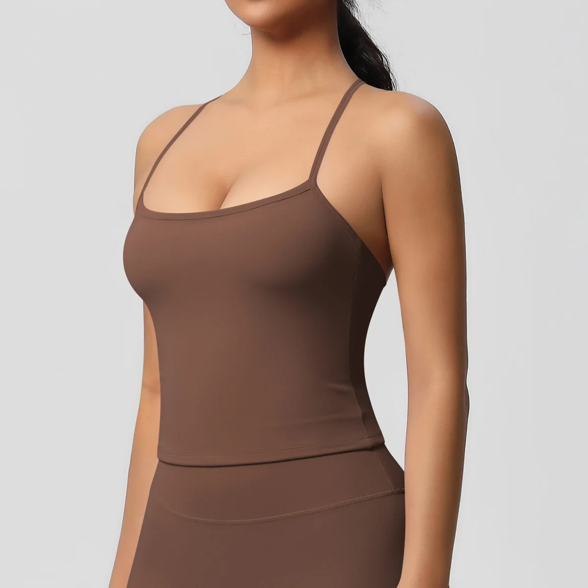 Regular Fit Longline Sports Tank Top for Women Double Layer Solid Color Racerback Yoga Bra Active Stretch Front for Gym Running