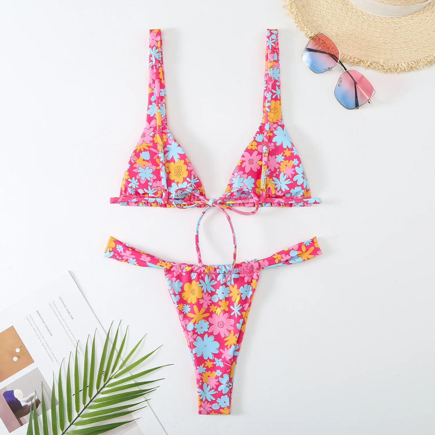 MLY Ruffle Bikini Summer Two Piece Suit Sexy Swimwear Bandage Biquini Triangle Swimsuit Printed Bathsuit