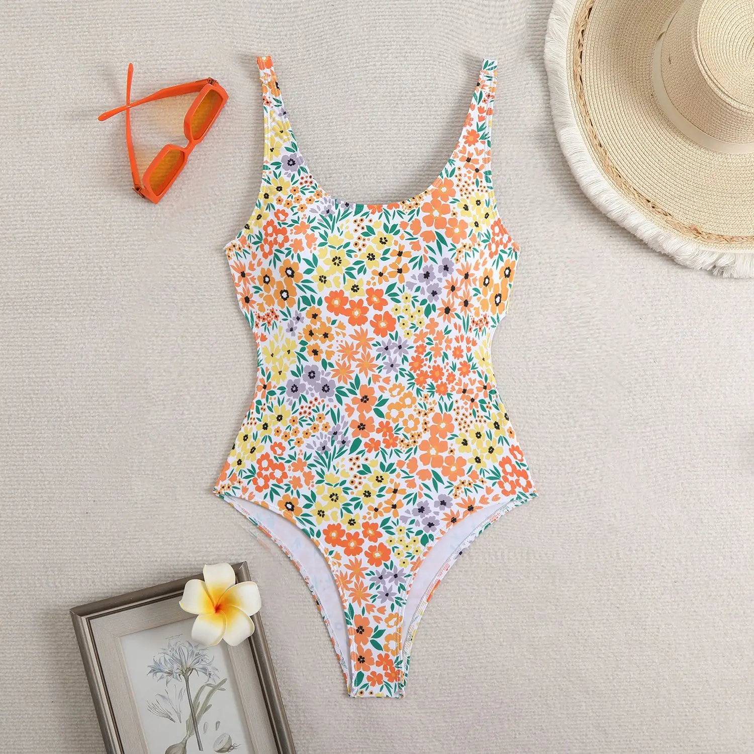 Women's Sexy One-Piece Swimsuit with Push-Up Bra Backless High Cut Design Hollow Out Eco-Friendly Printed Patchwork Style