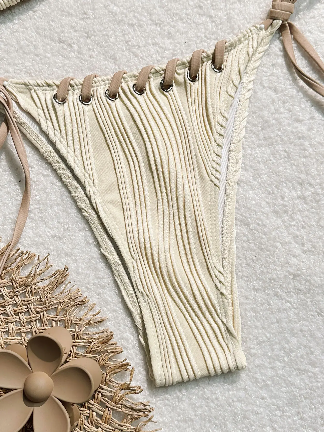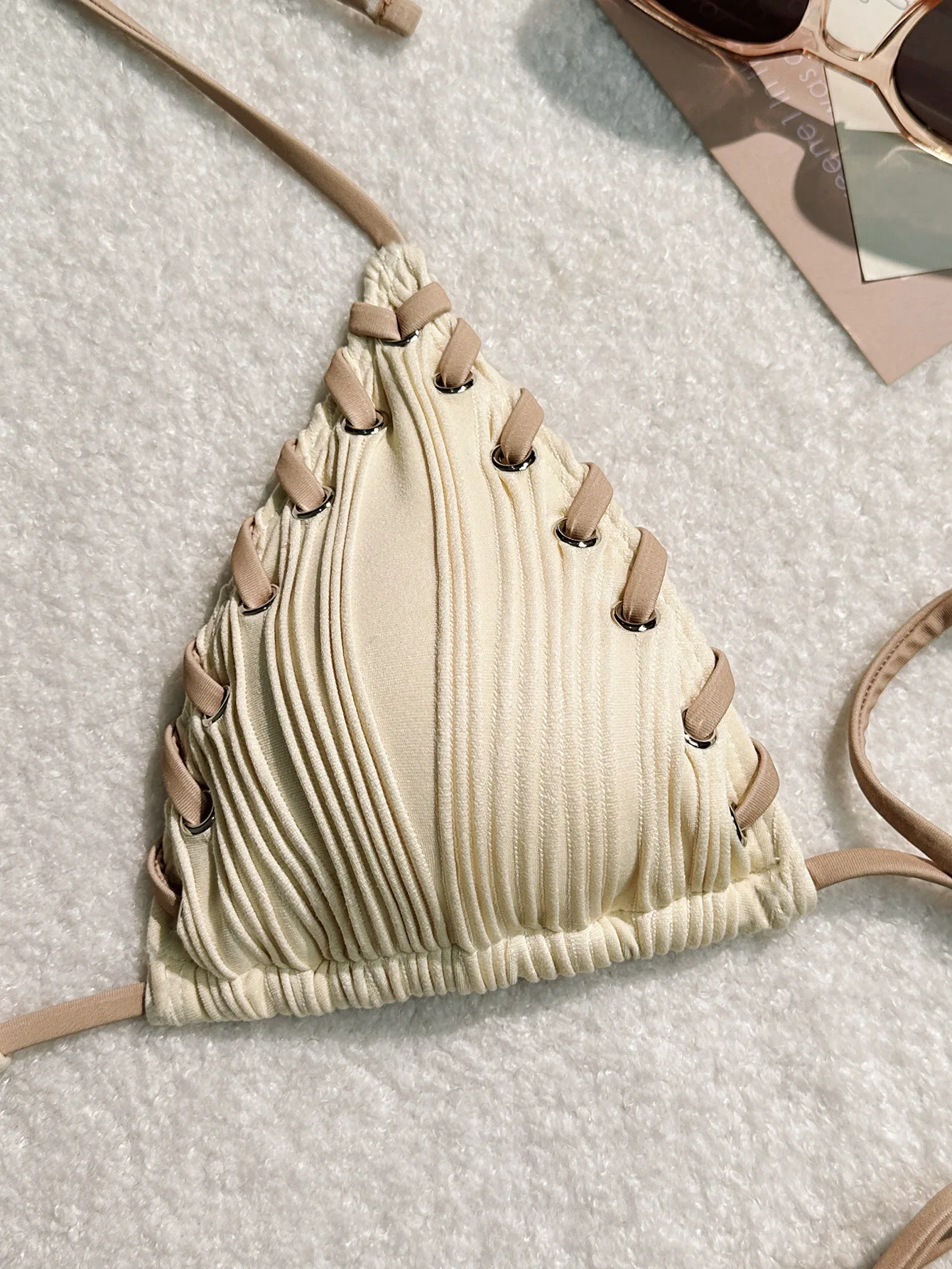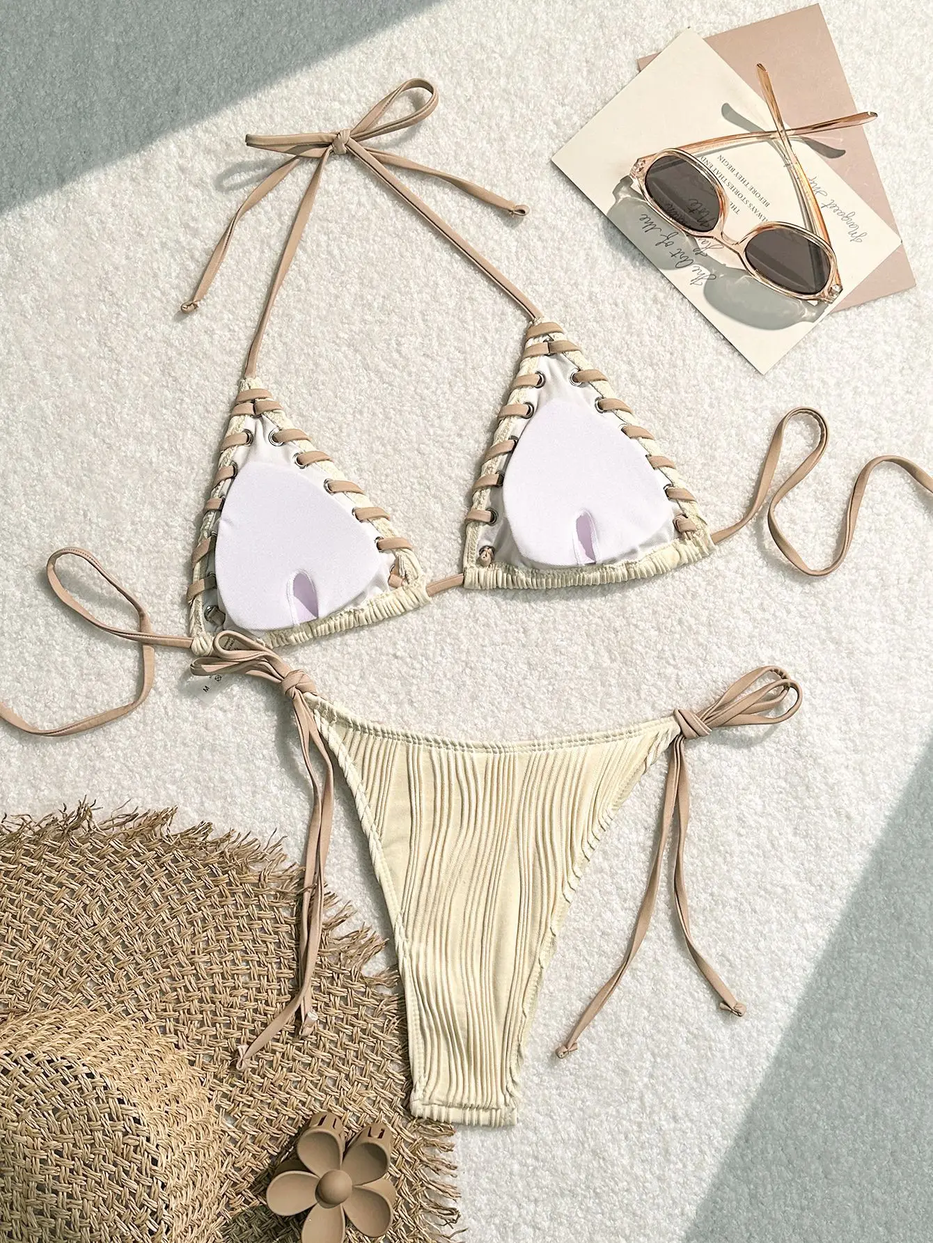 Women's Sexy Solid Color Bikini Set Adjustable Tie Straps Sliding Triangle Cups with Metal Ring Details 2-Piece Swimsuit