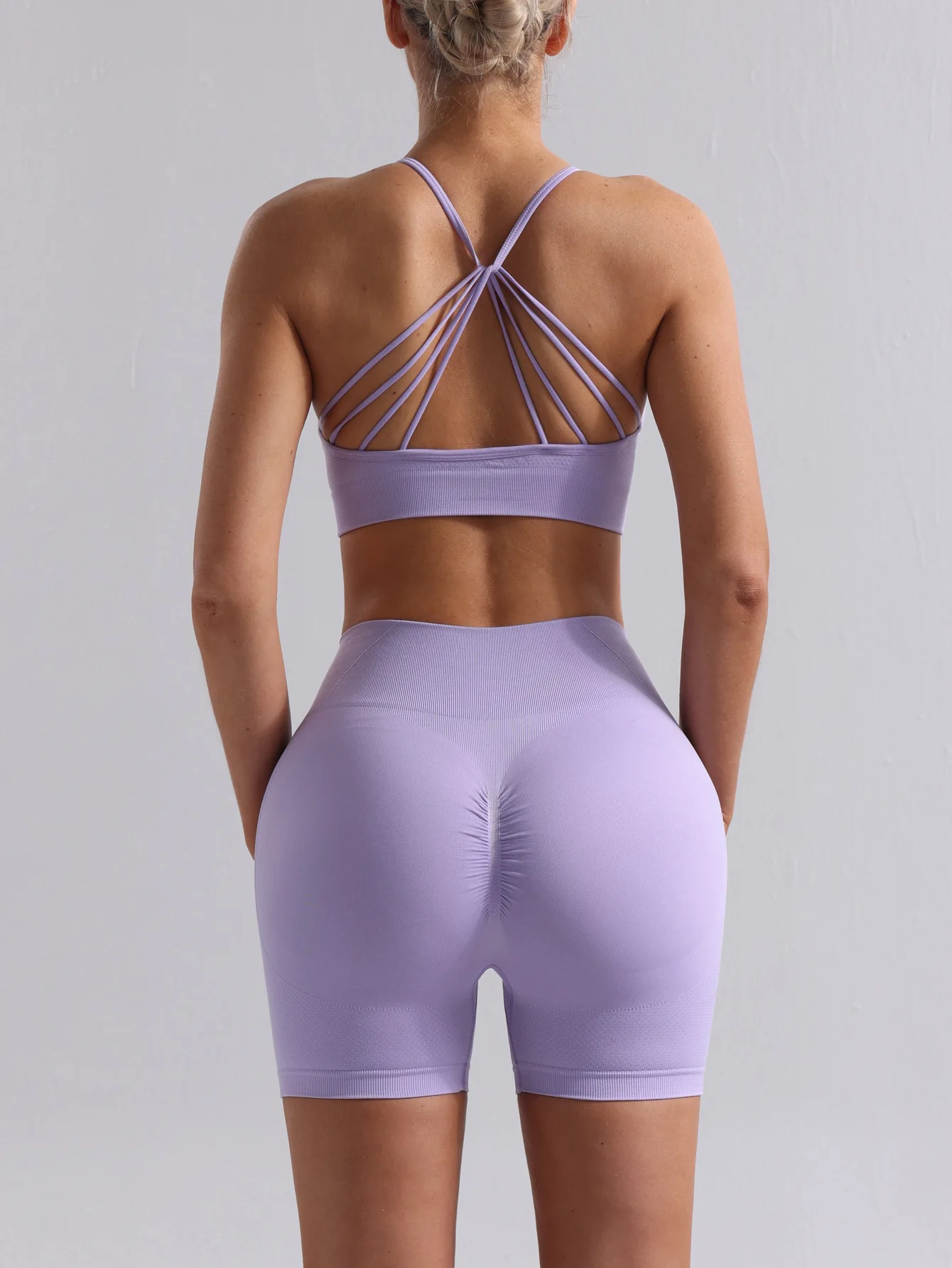 Seamless Sports Bra and Shorts Set for Women 2 Piece Yoga Outfit with Cross Straps