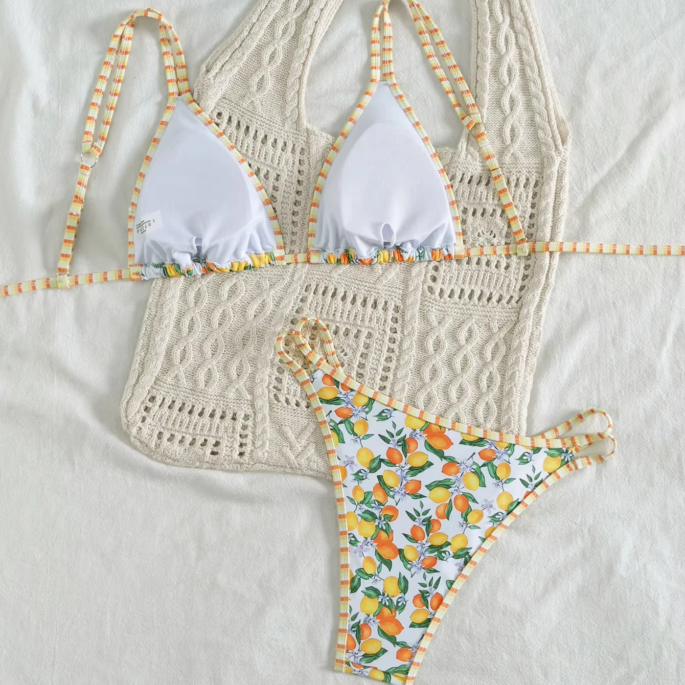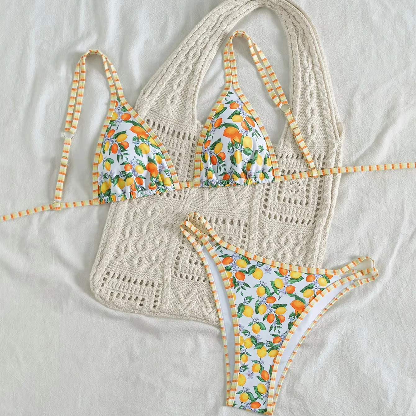 MLY Ruffle Bikini Summer Two Piece Suit Sexy Swimwear Bandage Biquini Triangle Swimsuit Printed Bathsuit