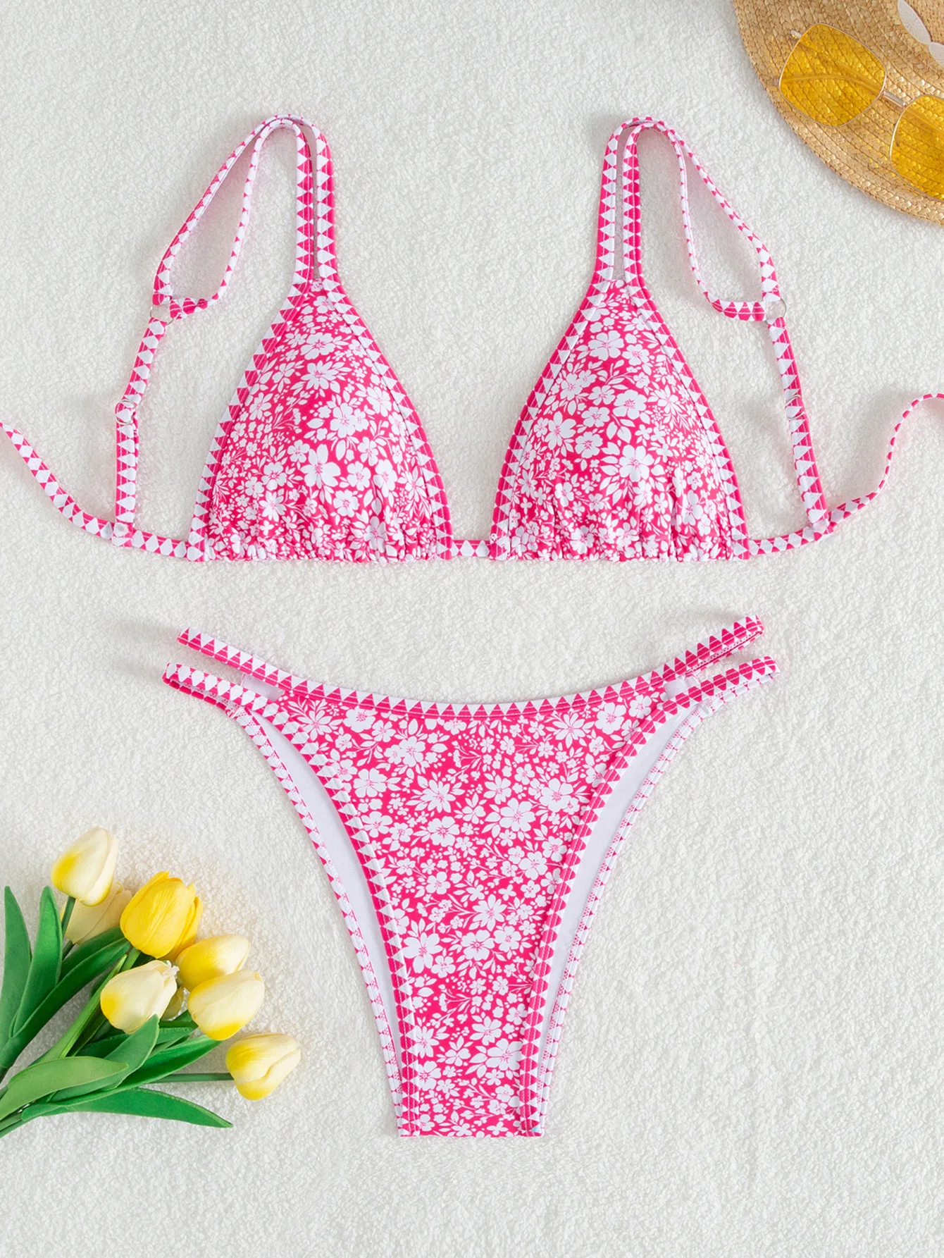 Women's Sexy Double Strap Low Rise Bikini Set Printed Two-Piece Swimsuit
