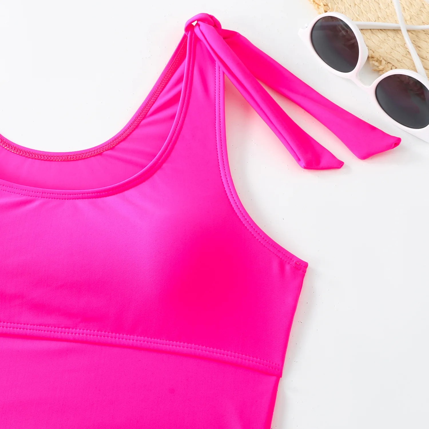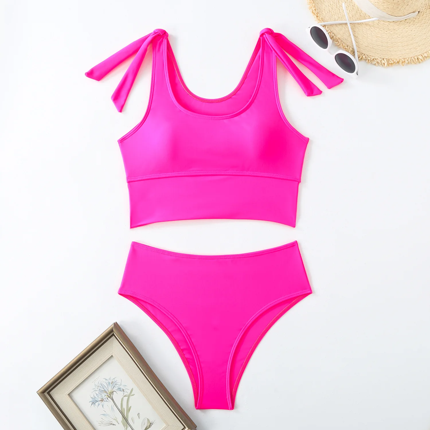 Sexy High Waist Bikini Set for Women with Cropped Top, Solid Color Two Piece Swimsuit for Beach or Pool