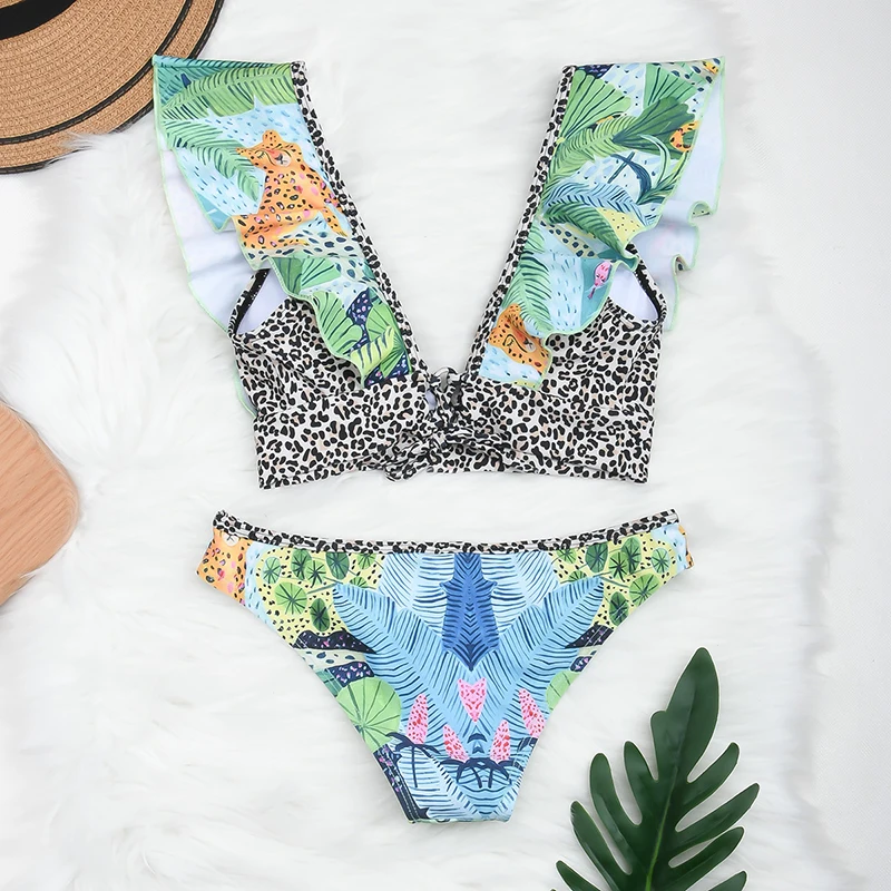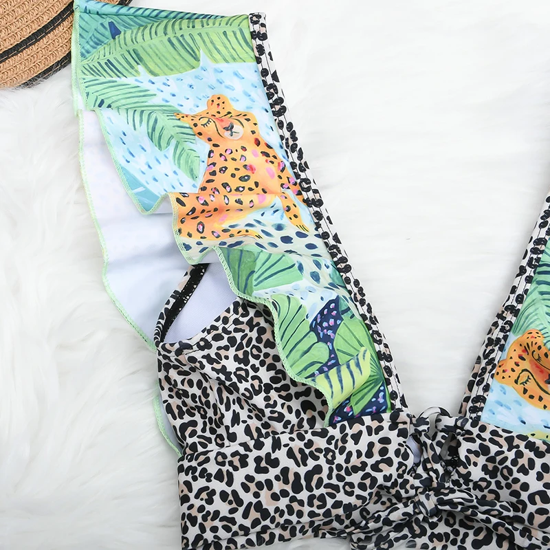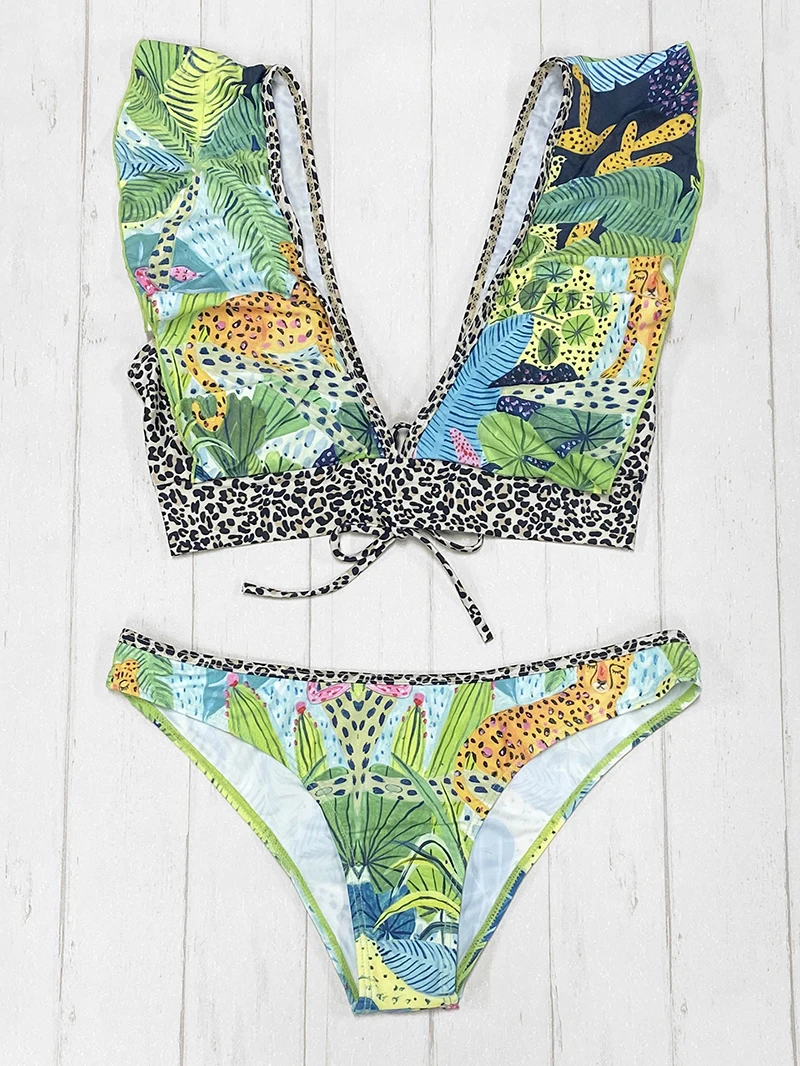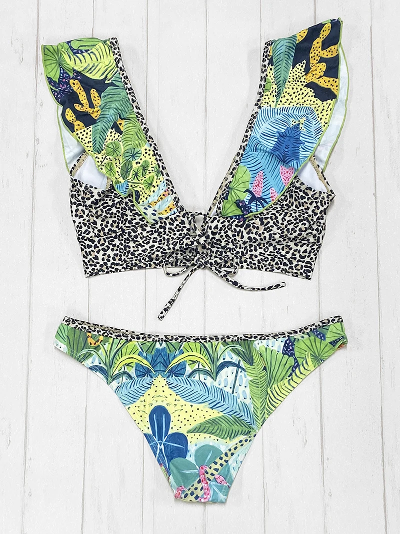 MLY Ruffle Bikini Summer Two Piece Suit Sexy Swimwear Bandage Biquini Triangle Swimsuit Printed Bathsuit