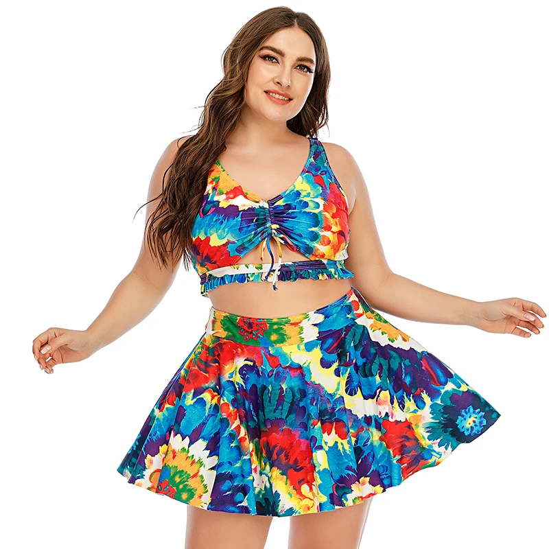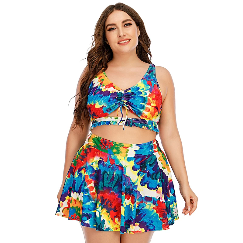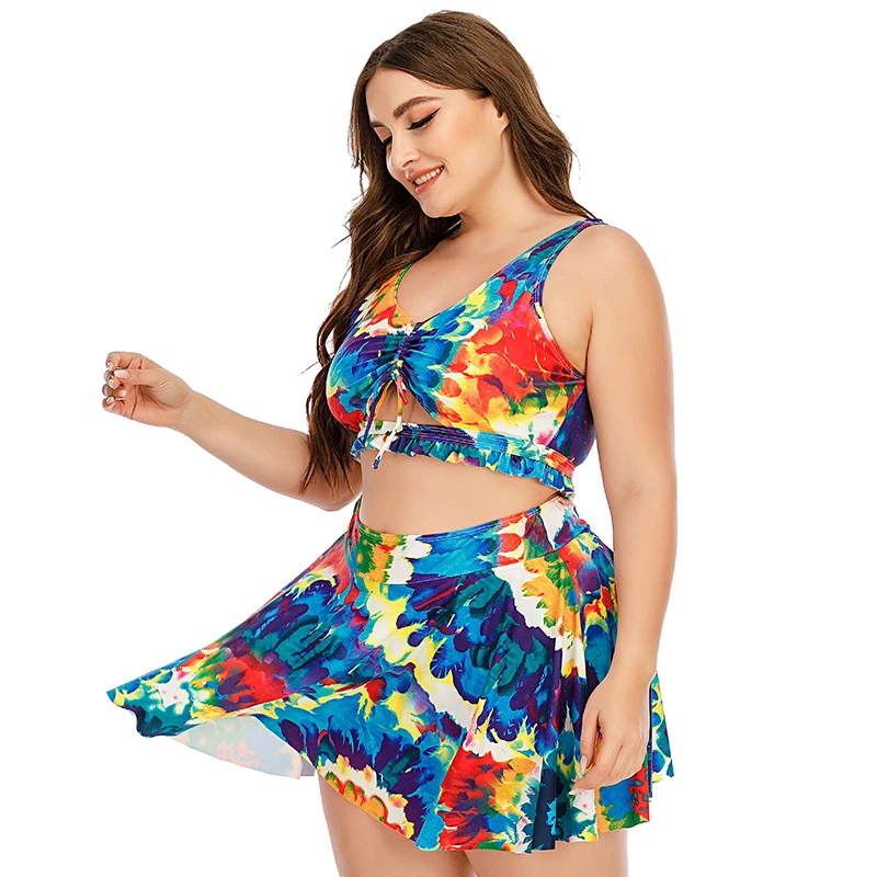 Trendy Oil Painting Print Sexy Women Plus Size Bikini Big Breast High Waist 2 Piece Women Swimsuit 2022 Beachwear