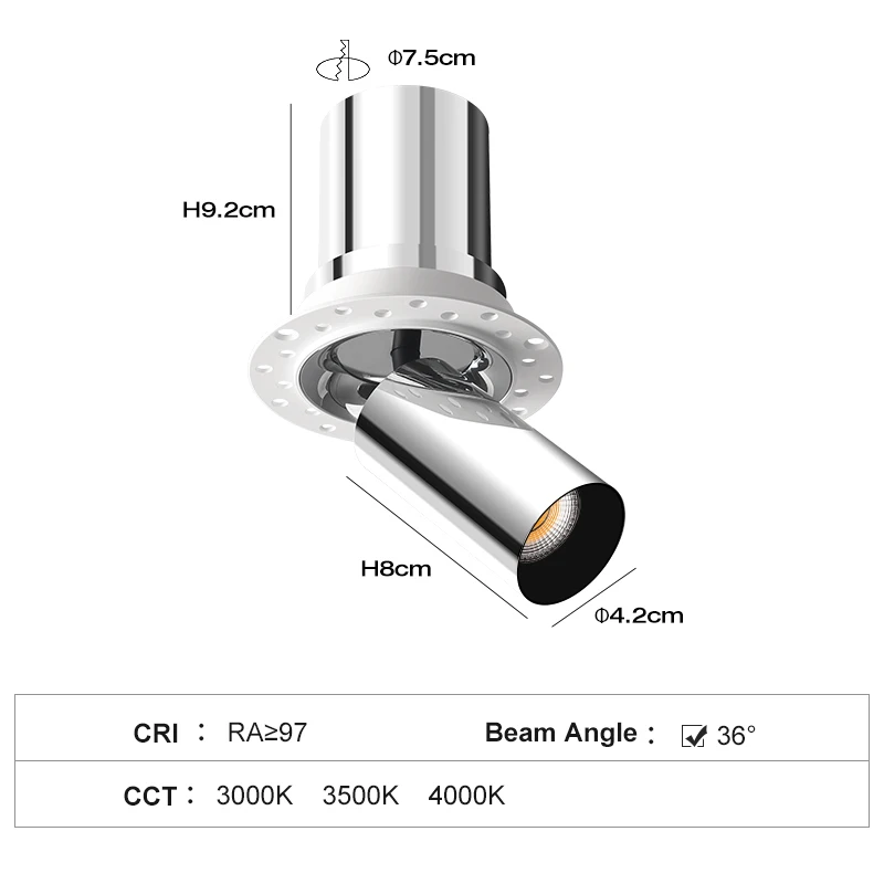 Cut 75mm Latin American Commercial Spotlight 12W 960Lm Cob Adjustable Recessed Ceiling Indoor Light Downlights