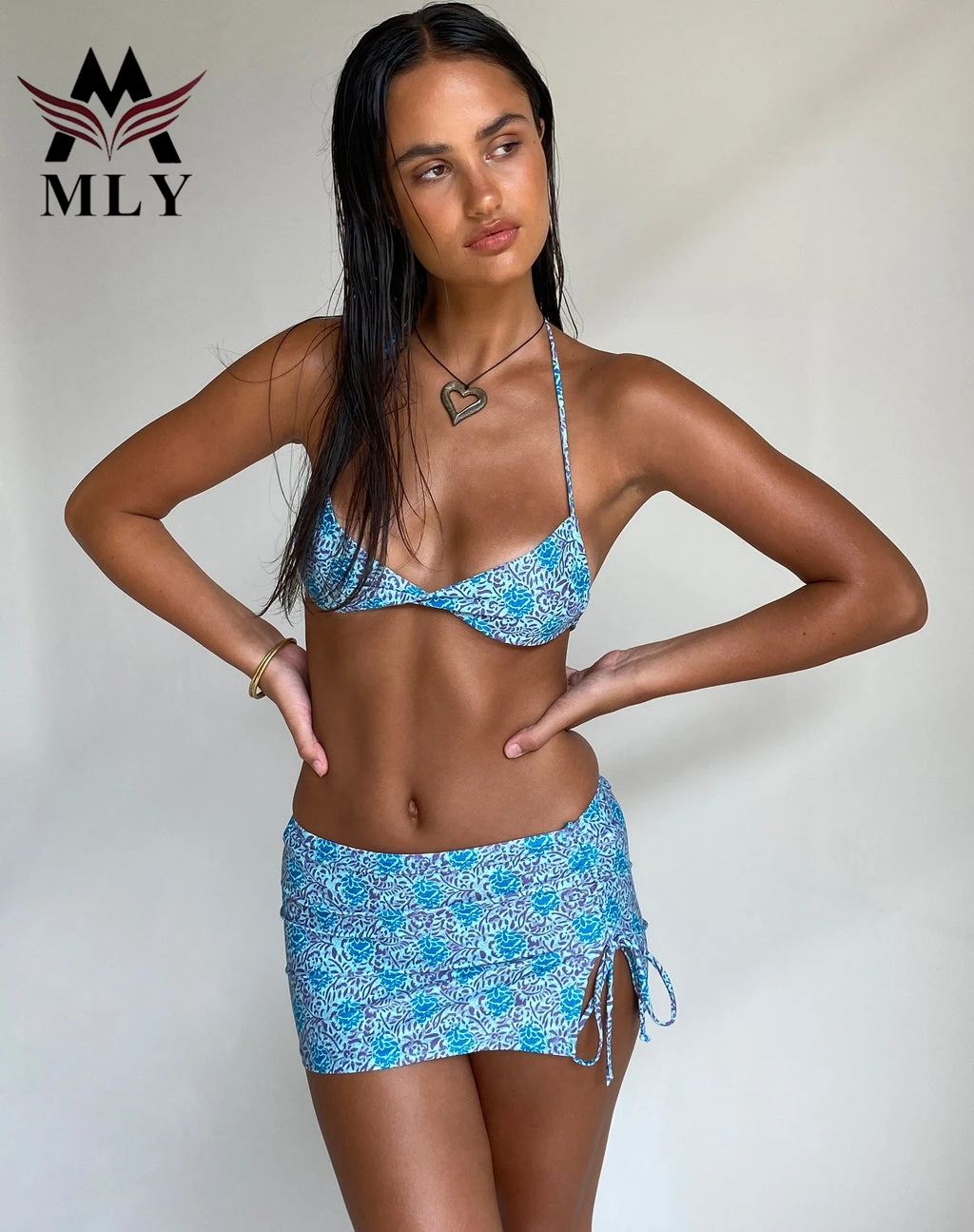 MLY Ruffle Bikini Summer Two Piece Suit Sexy Swimwear Bandage Biquini Triangle Swimsuit Printed Bathsuit