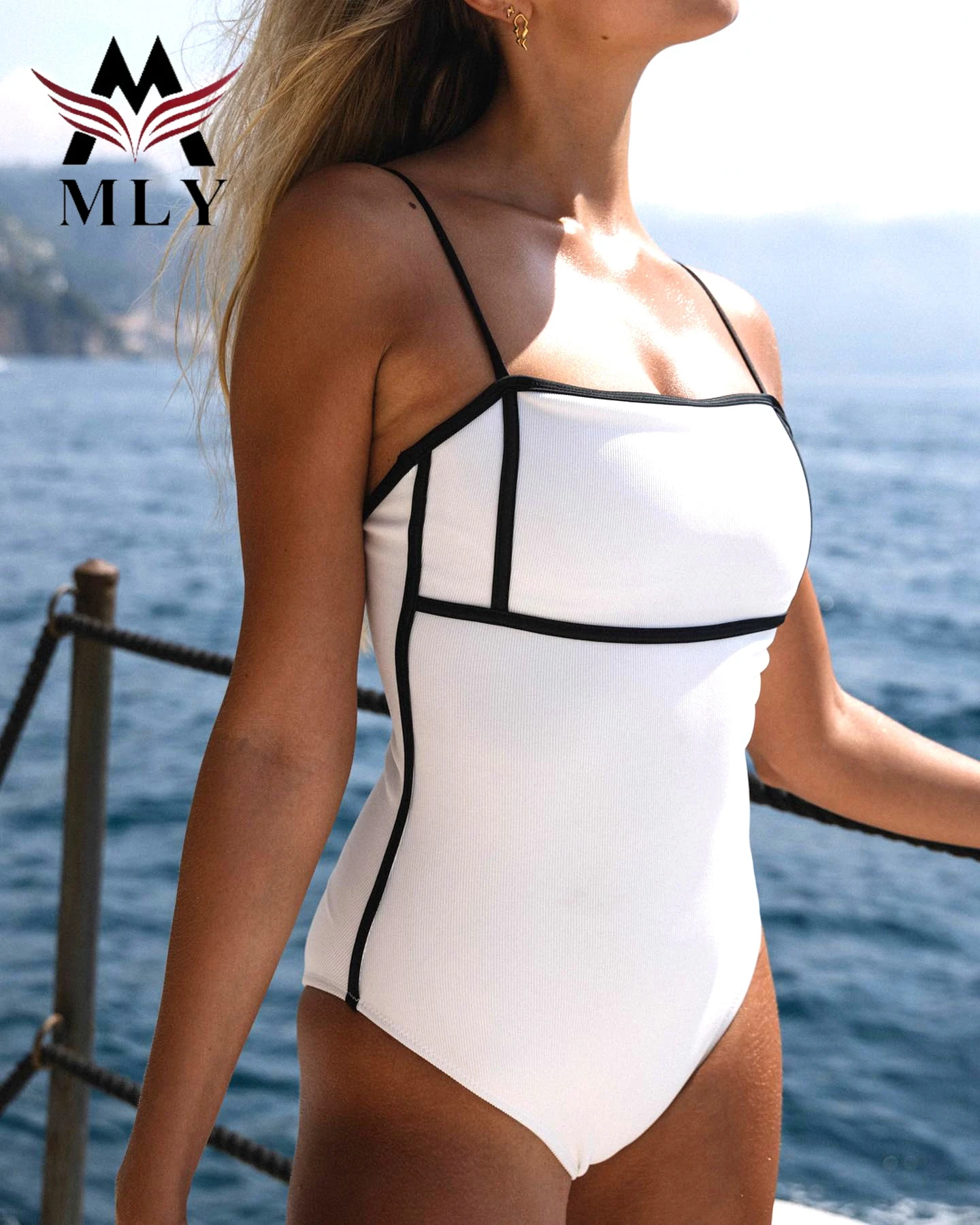 MLY Factory Wholesale Bikini Custom Sexy Bodysuit Jumpsuit Beachwear Backless Striped Print One Piece Swimwear