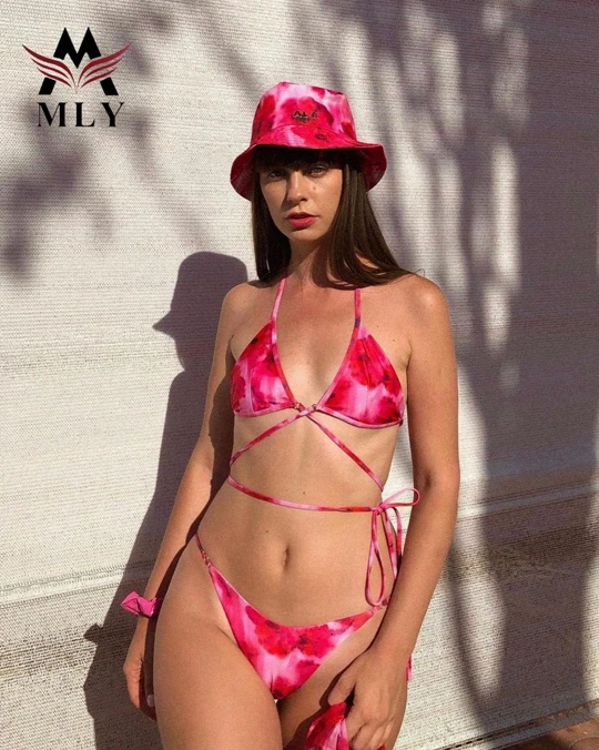 MLY Ruffle Bikini Summer Two Piece Suit Sexy Swimwear Bandage Biquini Triangle Swimsuit Printed Bathsuit