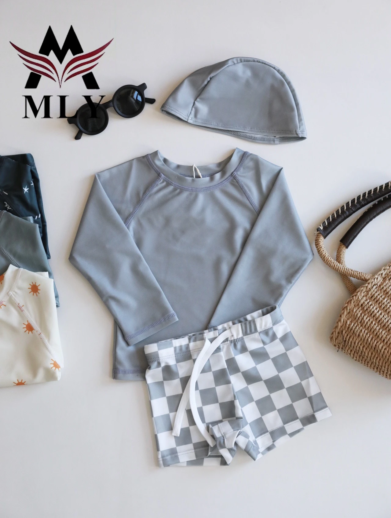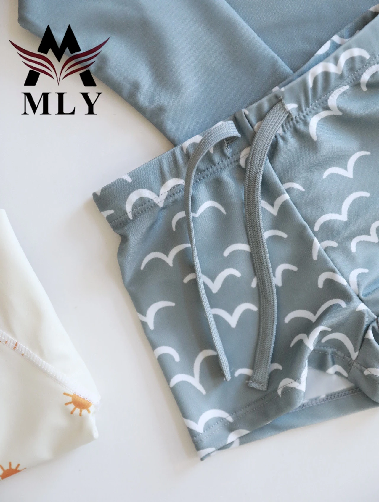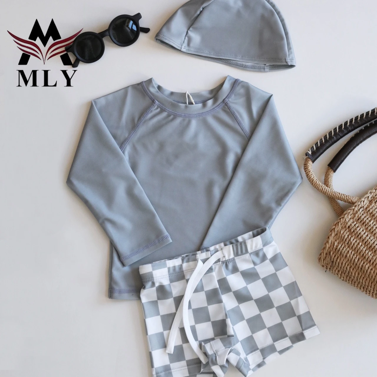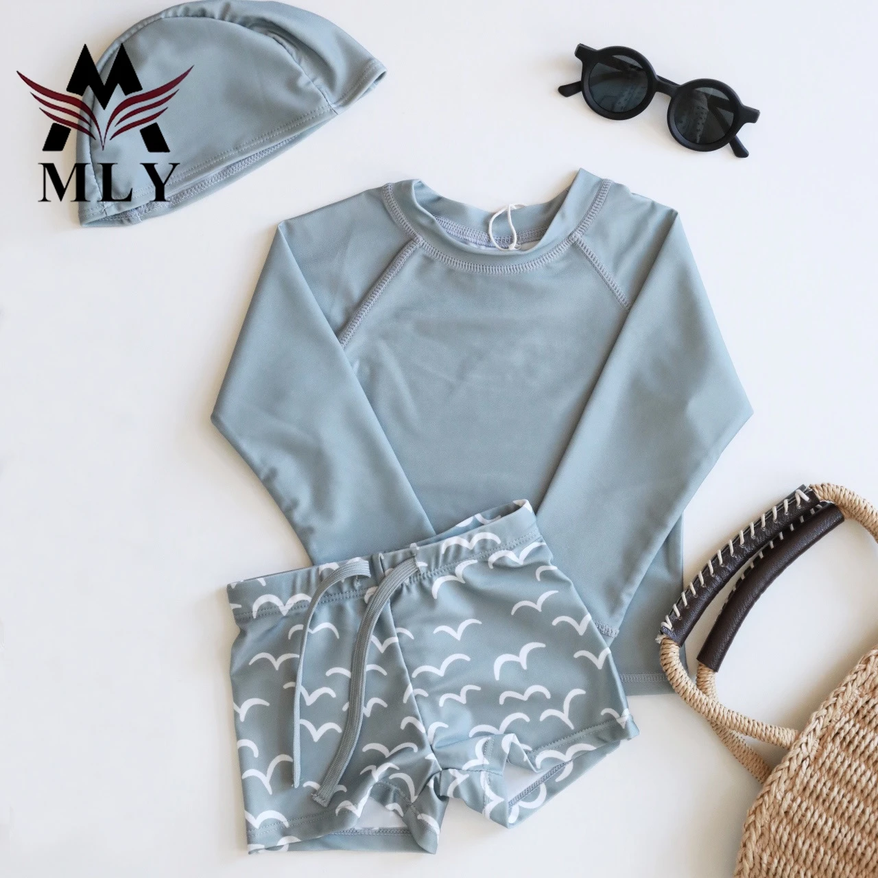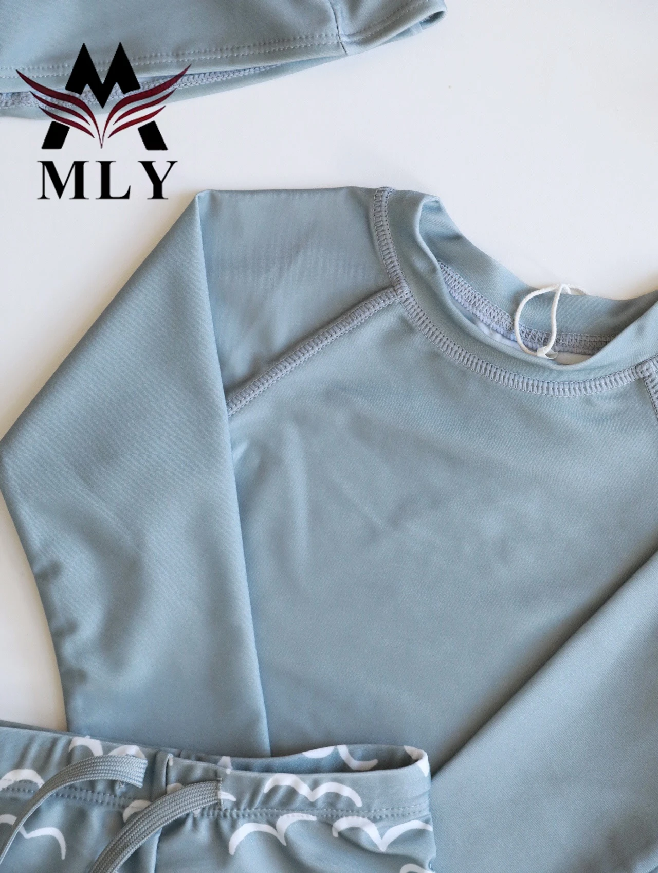 MLY Custom Long Sleeve Summer Printed Pullover Boy Swimsuit Set Long Sleeve Baby Boy Two Piece Swimwear Children Swimwear