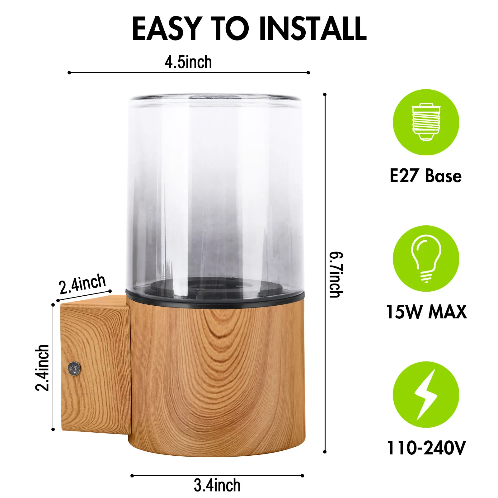Vertak Modern E27 LED Garden Light Waterproof Clear Glass Wall Lantern with Aluminum Base PC Lamp Body Wall Mounted
