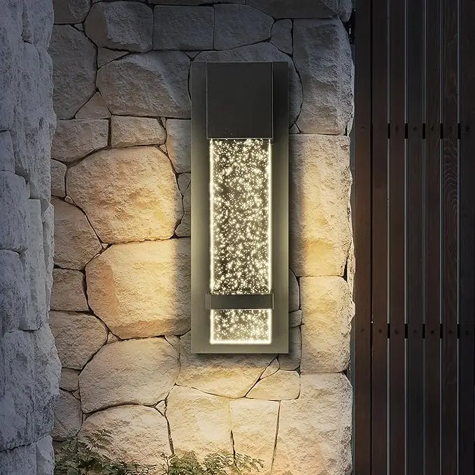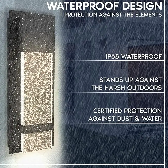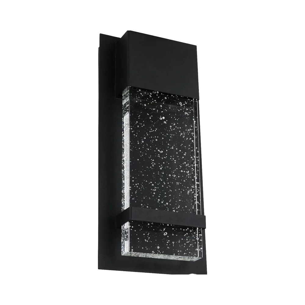 LED Wall Sconce 6.5 Wide Black Metal Frame Raindrop Effect Glass Panel Warm White Indoor Outdoor Aluminum Garden