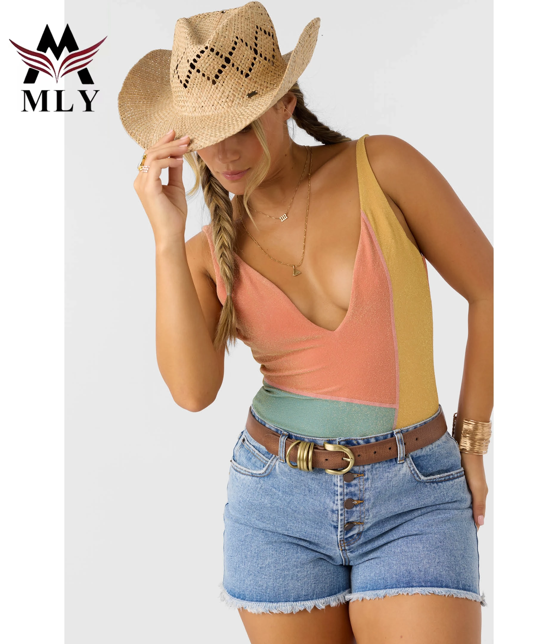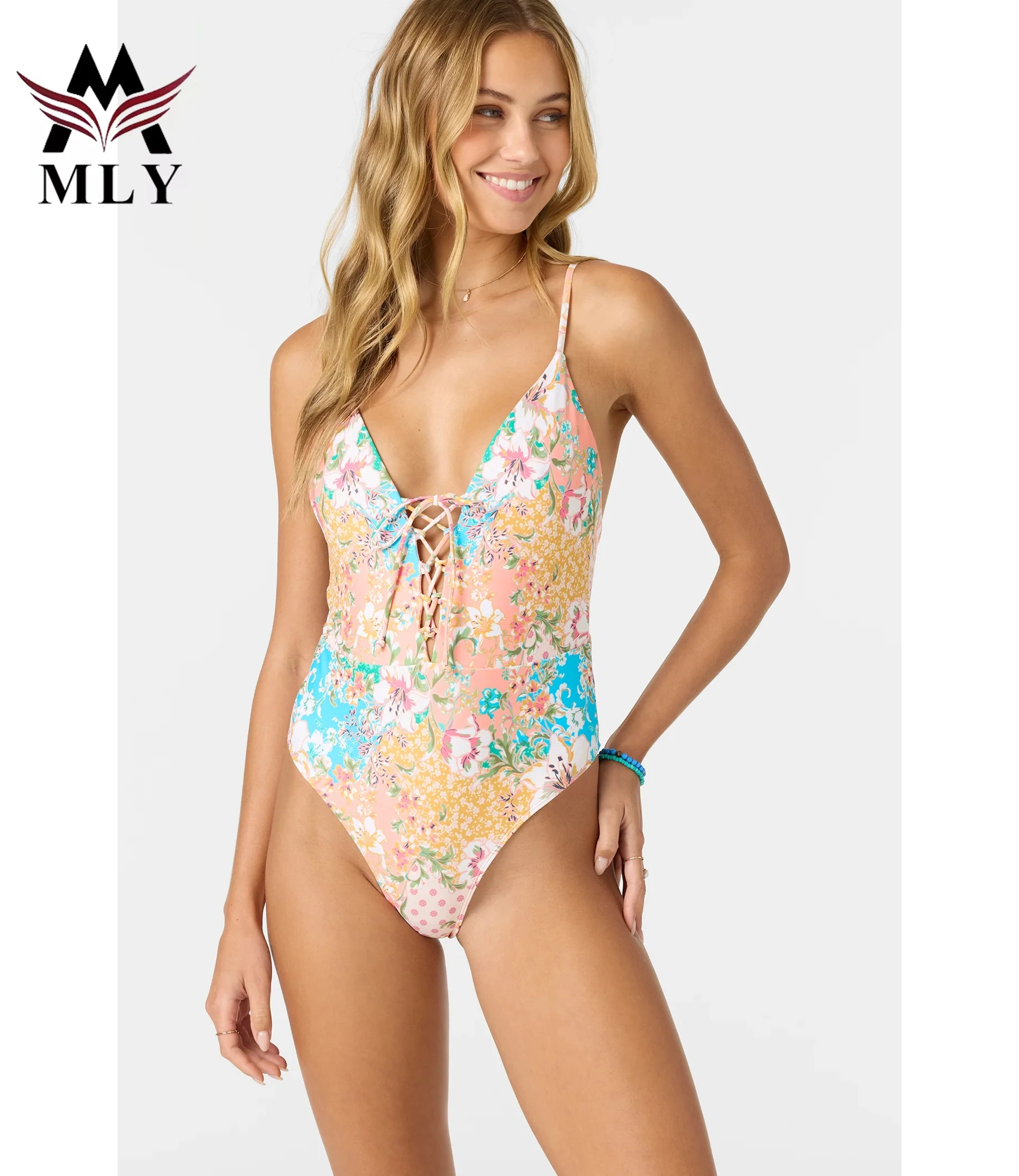 MLY OEM New Arrival Custom Conservative Jumpsuit One Piece Bikini Sexy Beachwear V-neck One Piece Swimsuit Swimwear