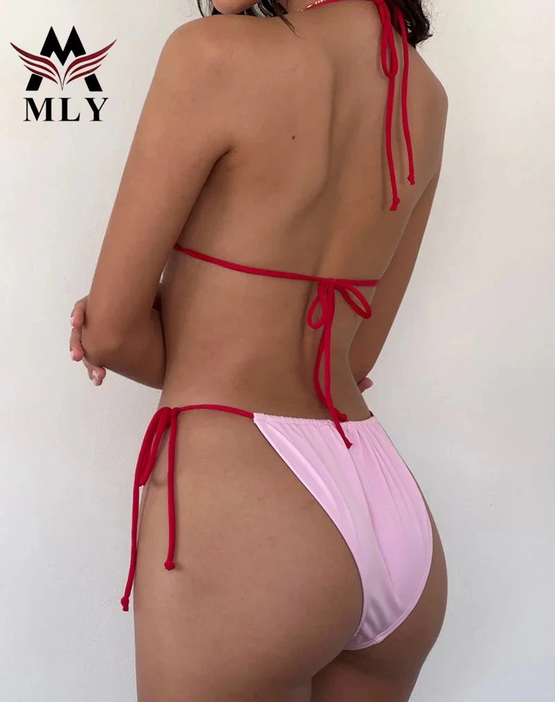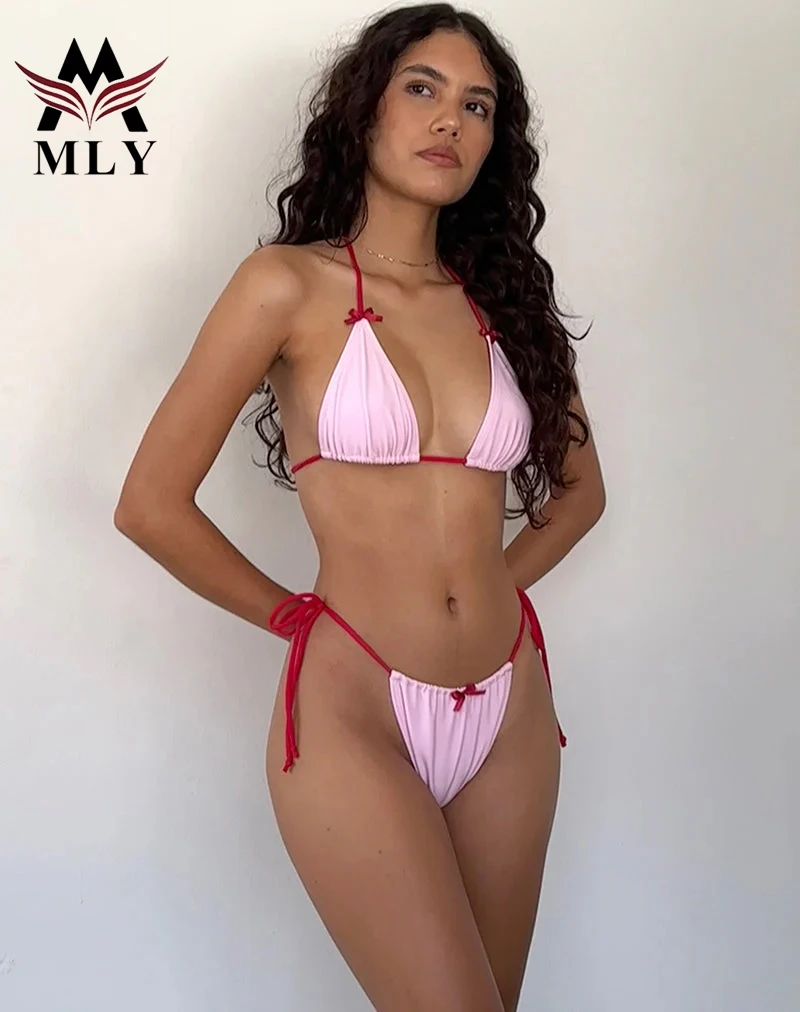 MLY Factory Custom Women Swimwear Beachwear String Bikini Girl Pink Bow Sexy Bikini