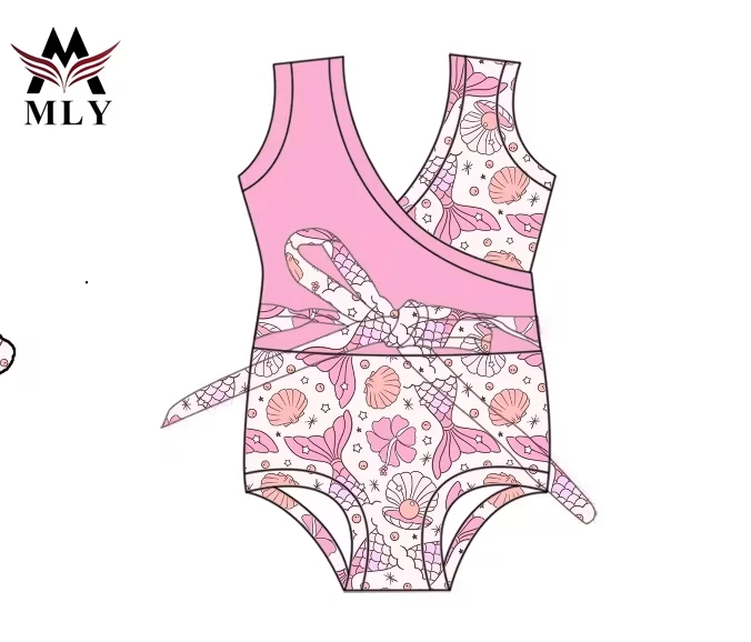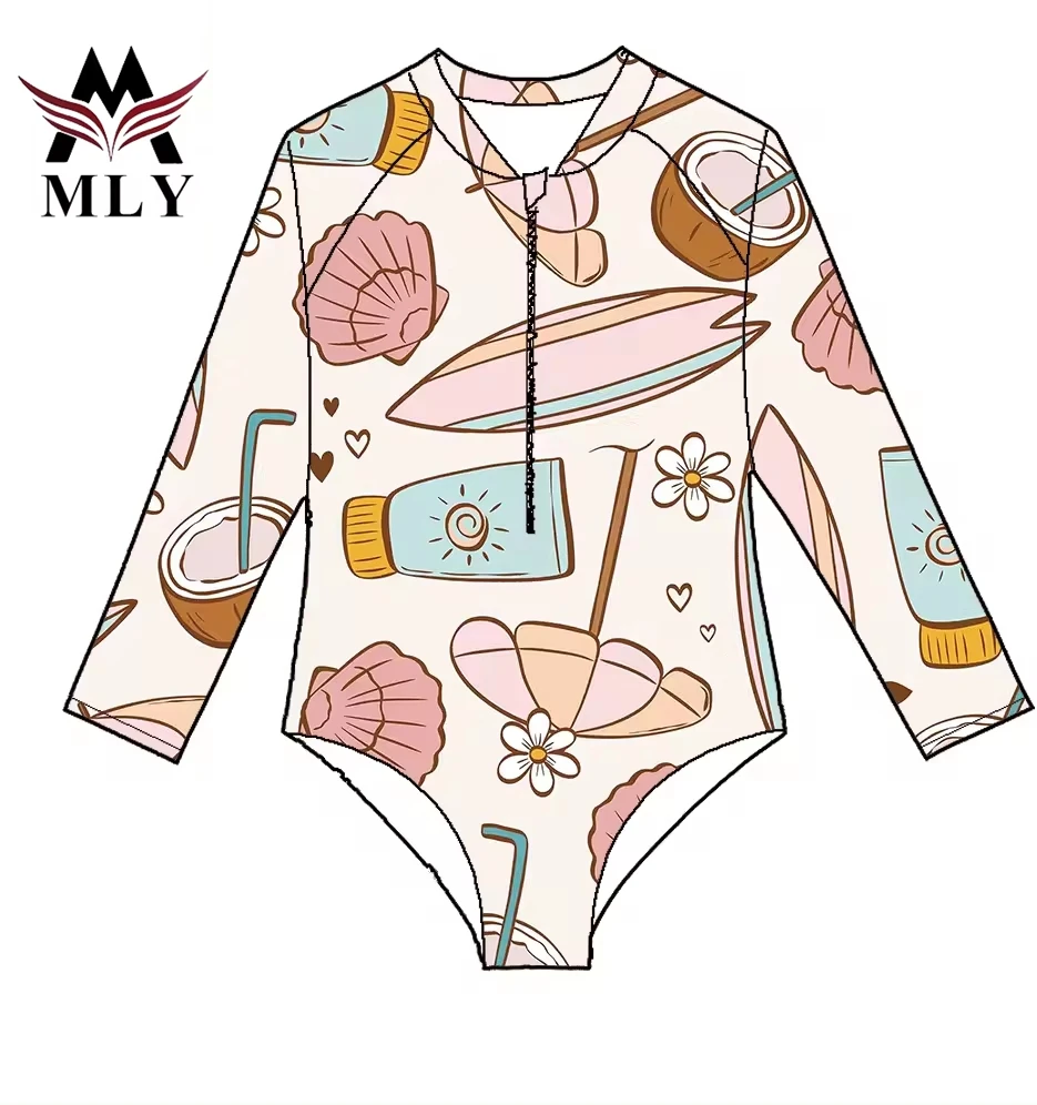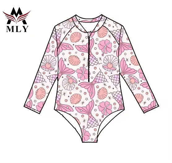 MLY New Trends Kids Swimsuit Long Sleeve Stretch Quick Dry One Piece Swimwear Floral Print Custom Jewelry Crystal Button