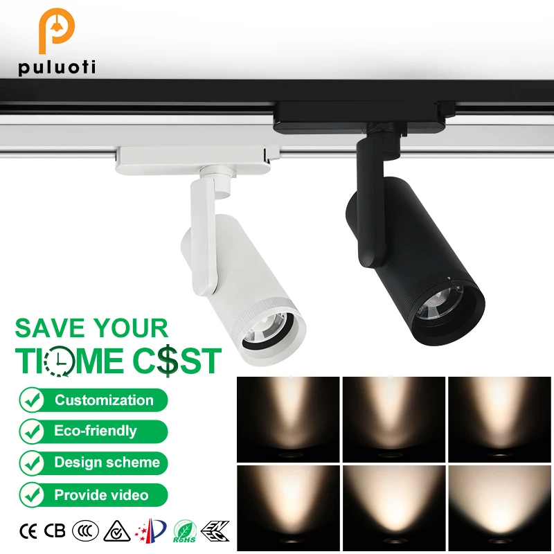 PULUOTI 30W ultra Thin Track Light Flexible Track Lighting Ceiling Commercial Track Lights 2 Wire Dimmable Spotlight Aluminium