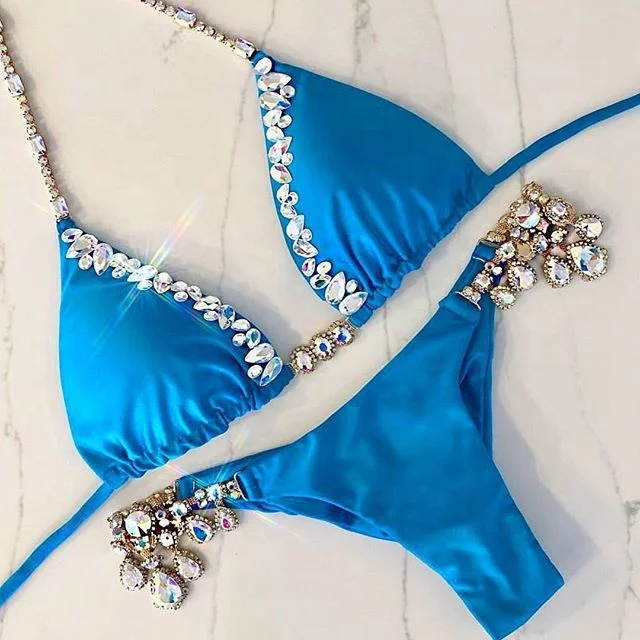 MLY Customized Popular 2 Pieces Swimwear Beads Crystal Swimsuit Fashion Women Bathing Suits