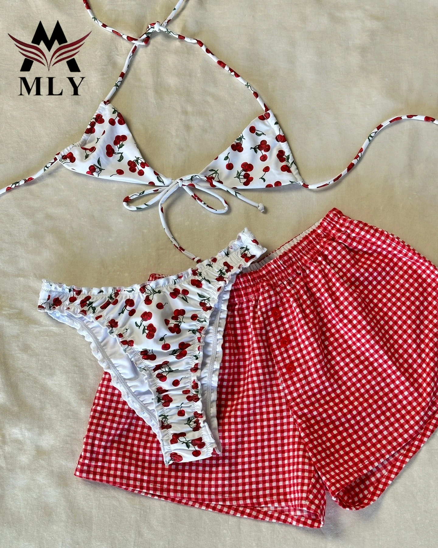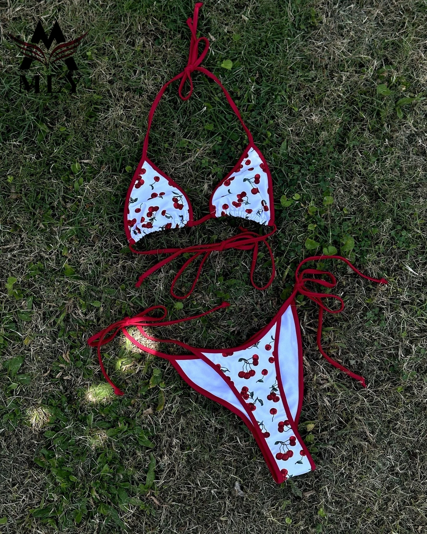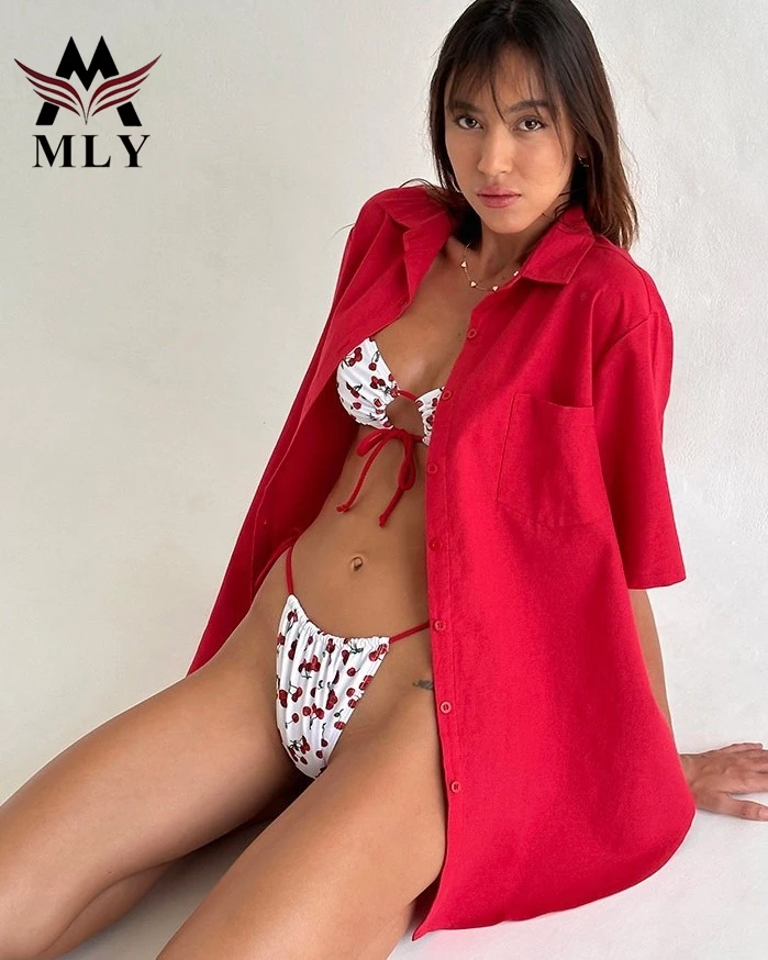 MLY Custom Hot Style Design New Sexy Two Piece Bikini Cherry Print Swimwear G String Girls Swimsuit Bating Suit
