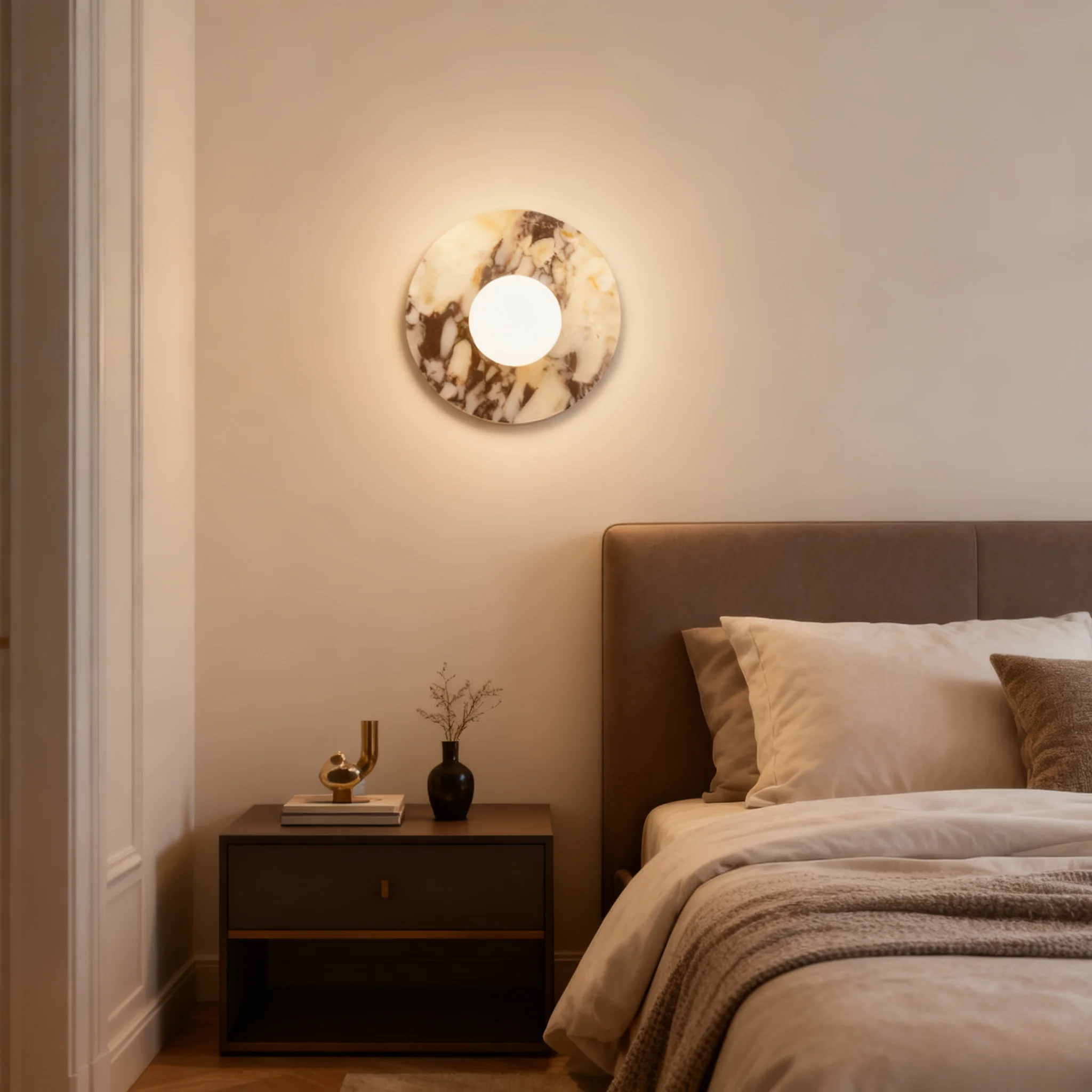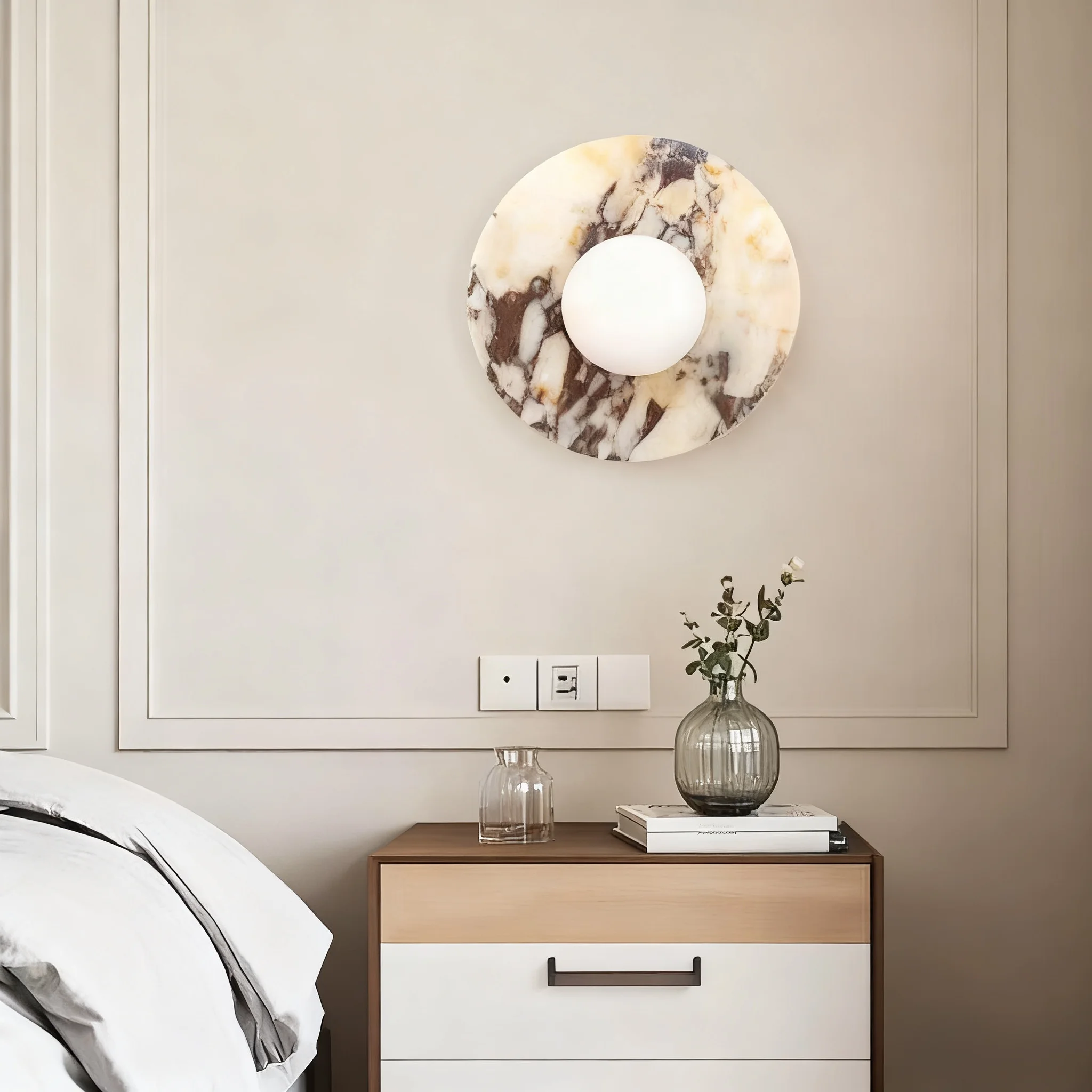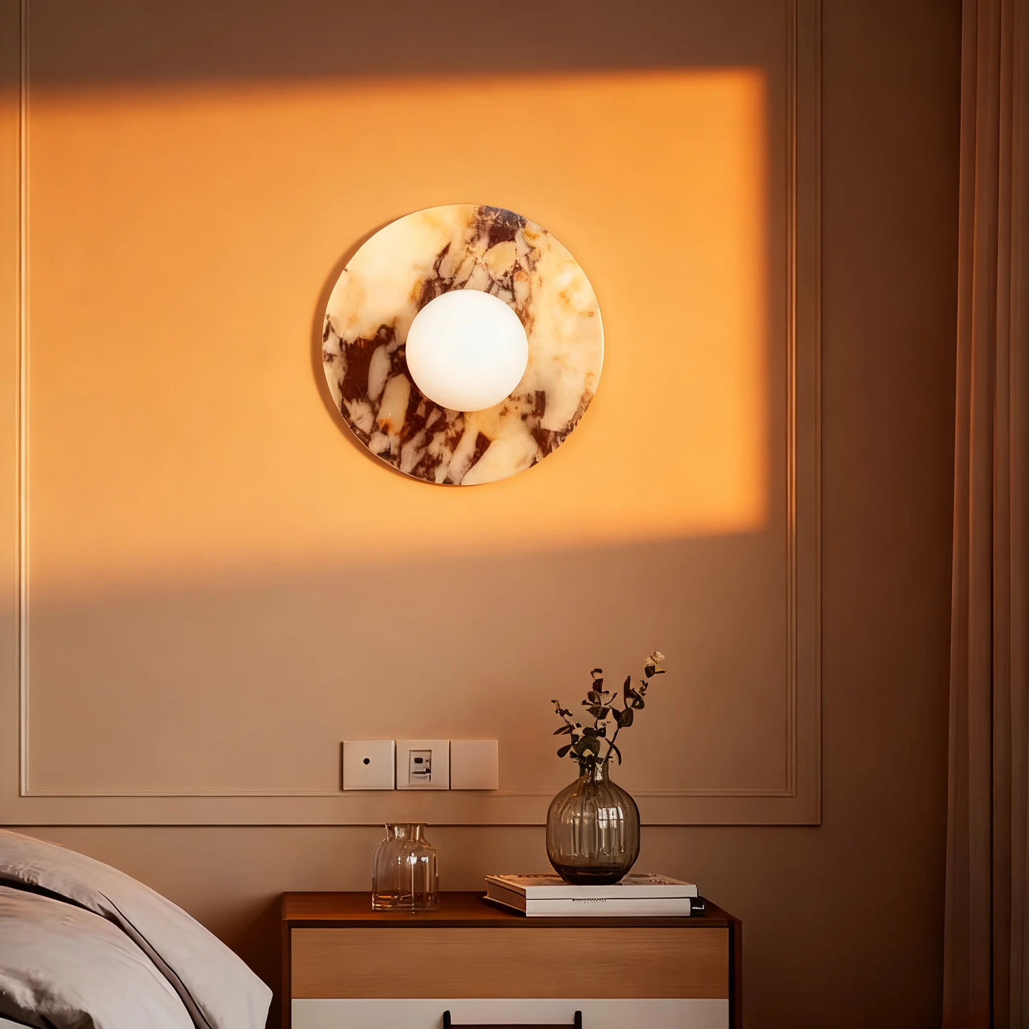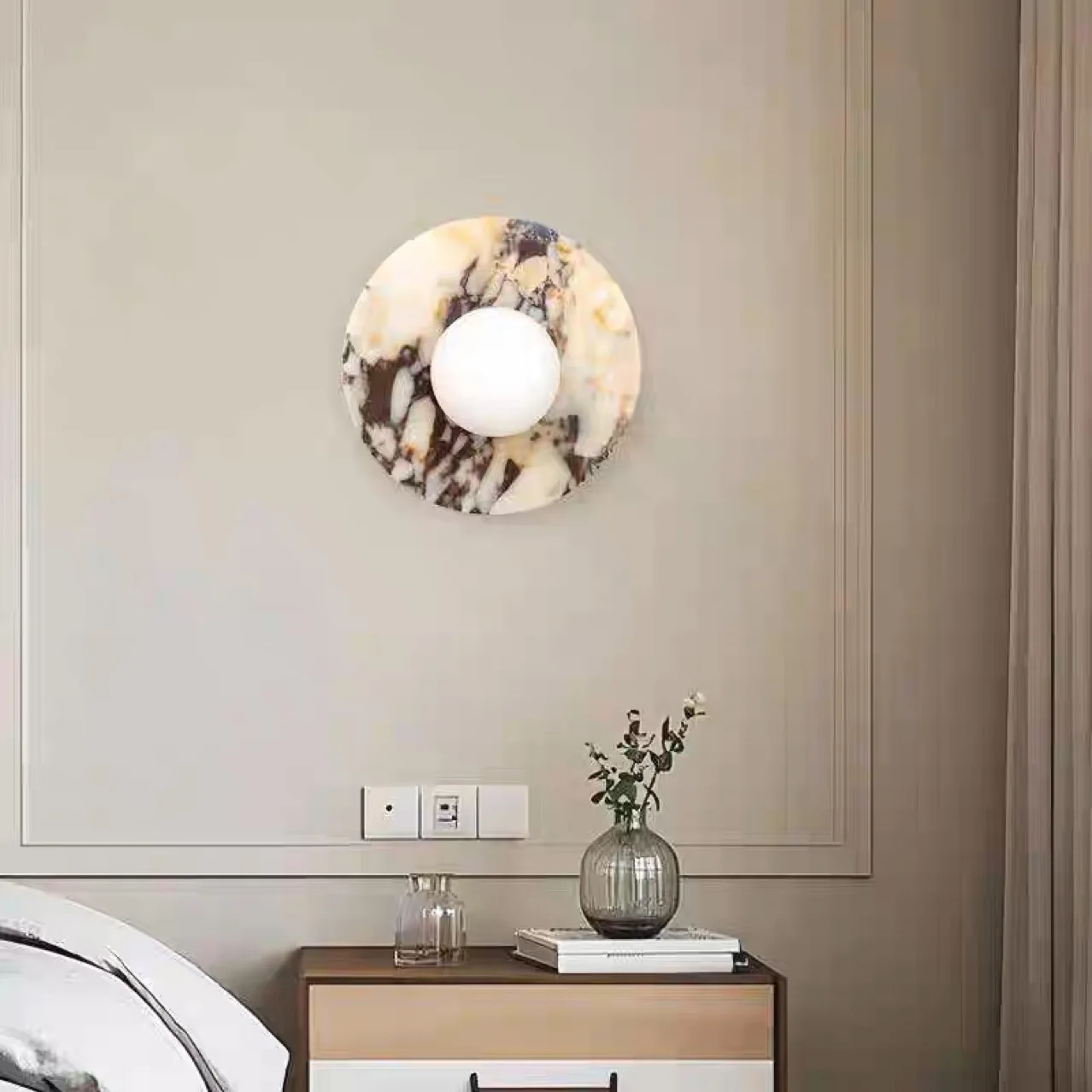JACKSUN French Wabi-Sabi Style Natural Marble Wall Lamp Living Room Bedside Lamp Hallway Entryway Wall Lamp