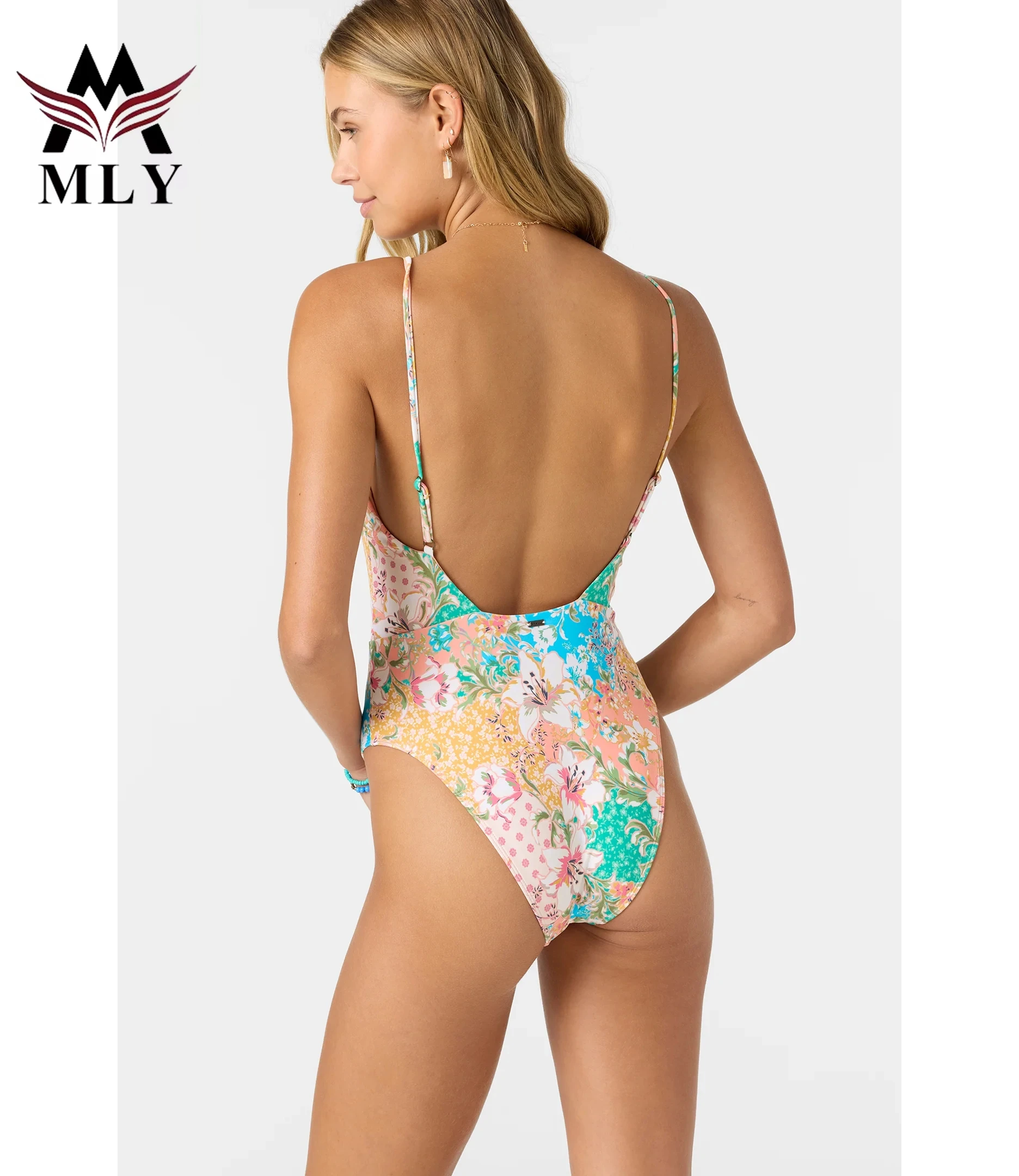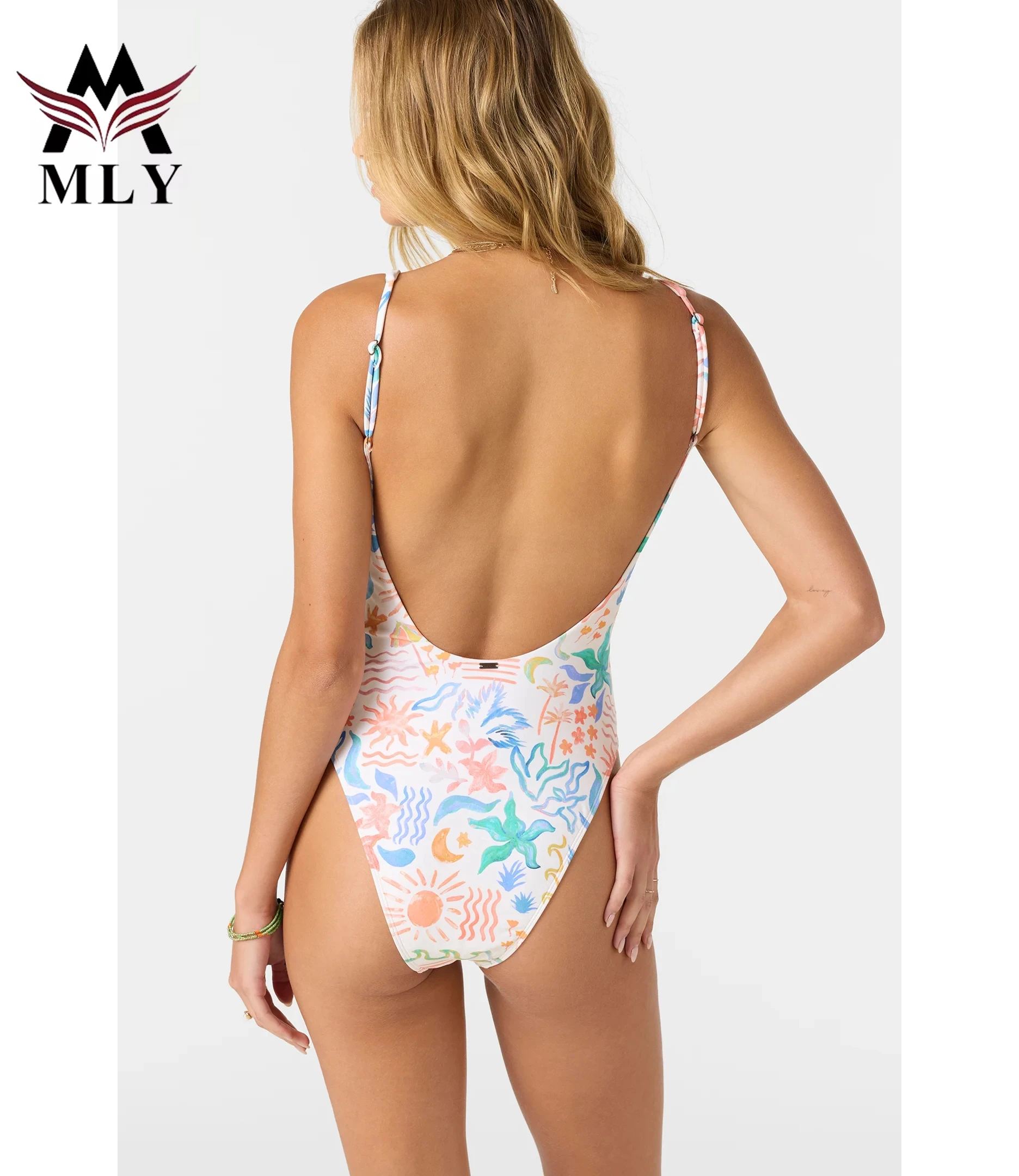 MLY Factory Wholesale Bikini Custom Sexy Bodysuit Jumpsuit Beachwear Backless Striped Print One Piece Swimwear