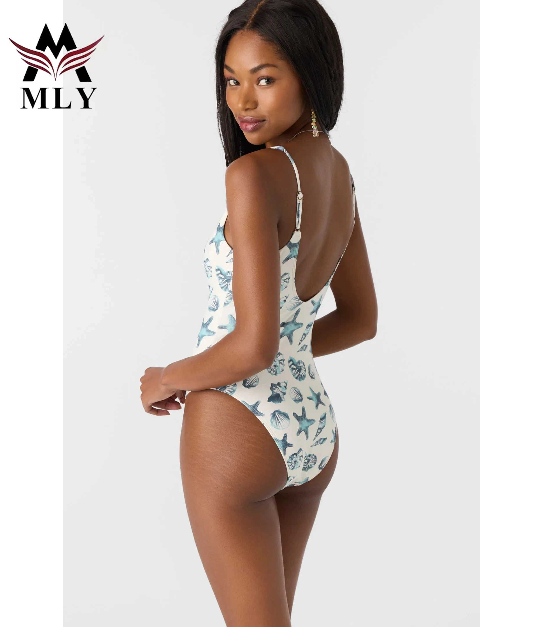 MLY Plus Size String Bikinis Set Sexy Custom Logo Printing Designer Solid Color One Piece Swimsuit