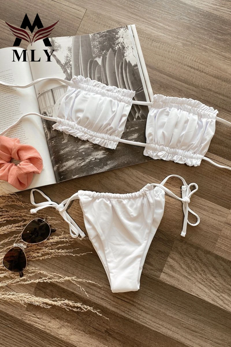 MLY Ruffle Bikini Summer Two Piece Suit Sexy Swimwear Bandage Biquini Triangle Swimsuit Printed Bathsuit