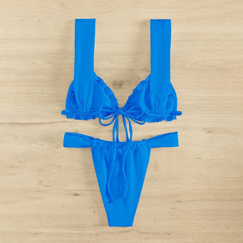 MLY Ruffle Bikini Summer Two Piece Suit Sexy Swimwear Bandage Biquini Triangle Swimsuit Printed Bathsuit