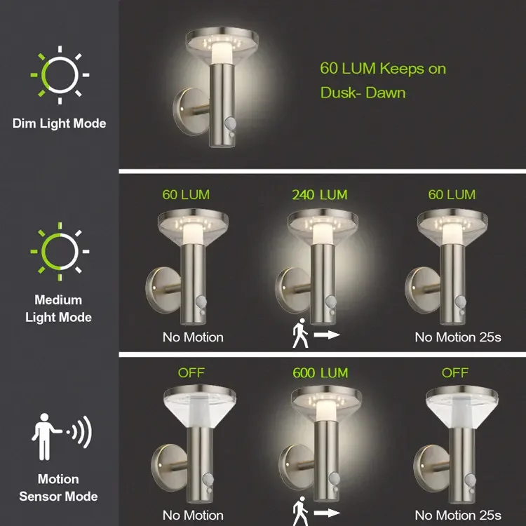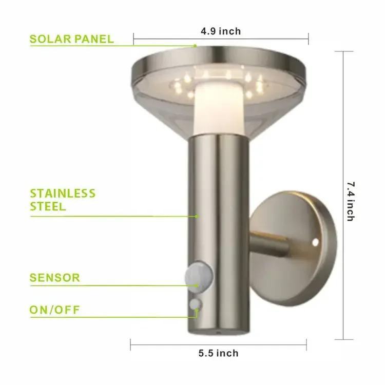 Vertak Popular Morden Motion Sensor Solar Outdoor Wall Lighting Lantern Garden Decorative Waterproof Wall Lamp