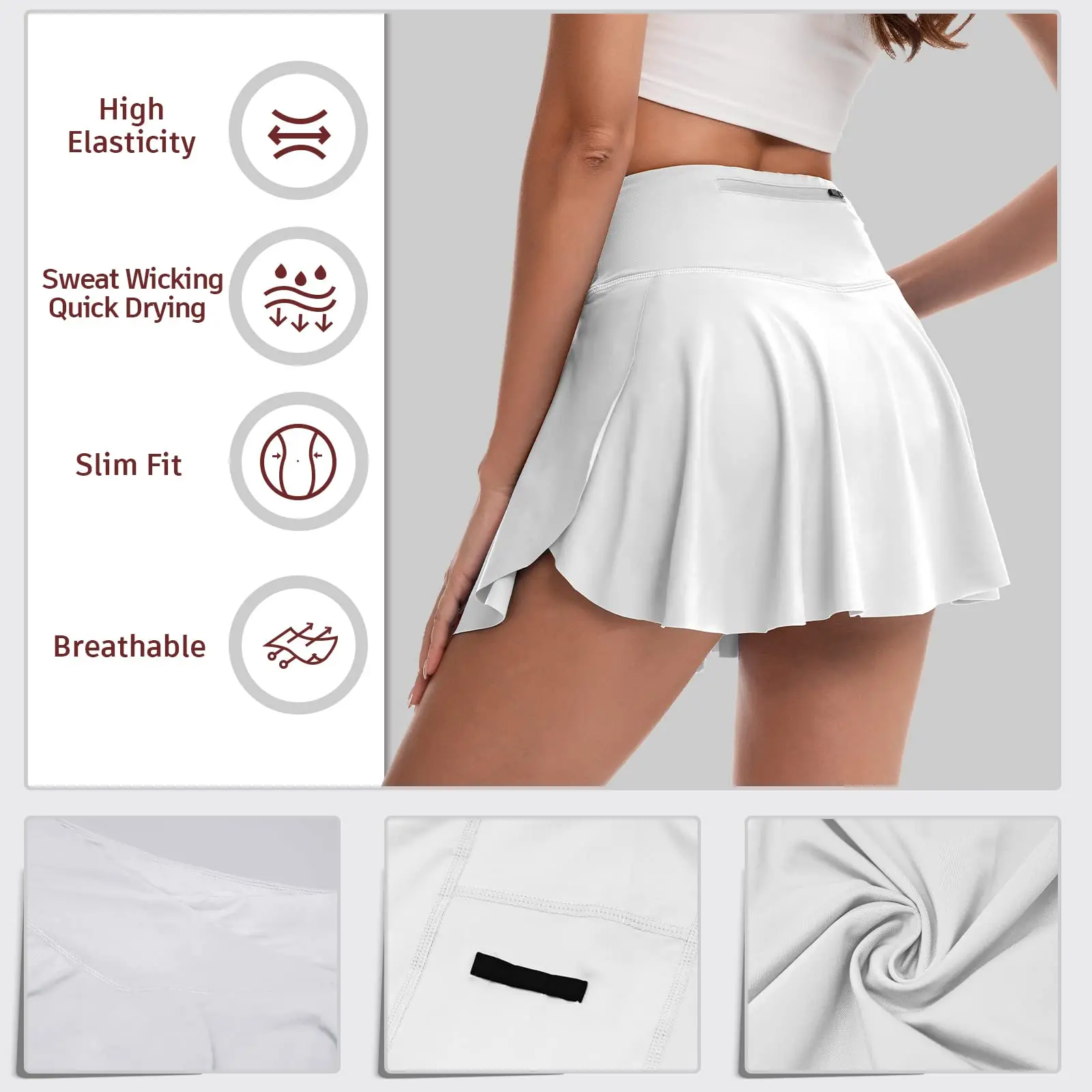 Factory Price Quick-Drying Pantskirt Sport Skort Custom Sexy White Tennis Wear OEM Team Name on Sportswear Tennis Skirts