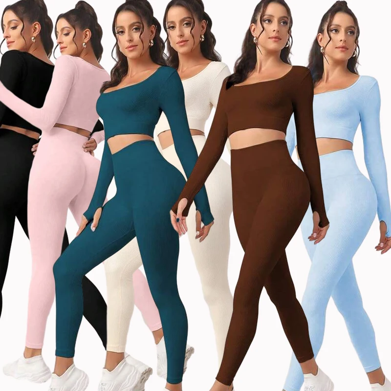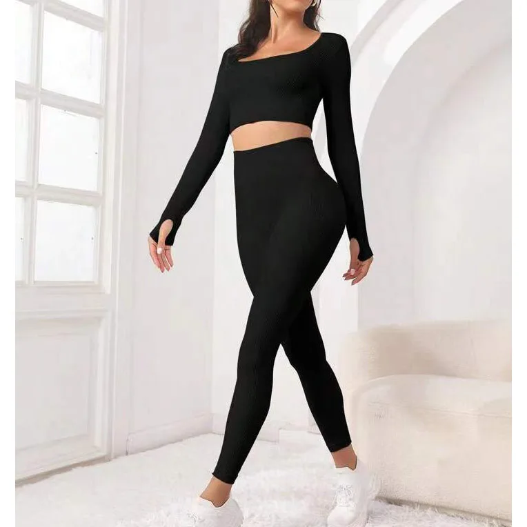 New Design Wholesale Custom High Quality Long Sleeve 2 Piece Yoga Set Plus Size Gym Fitness Sets for Women
