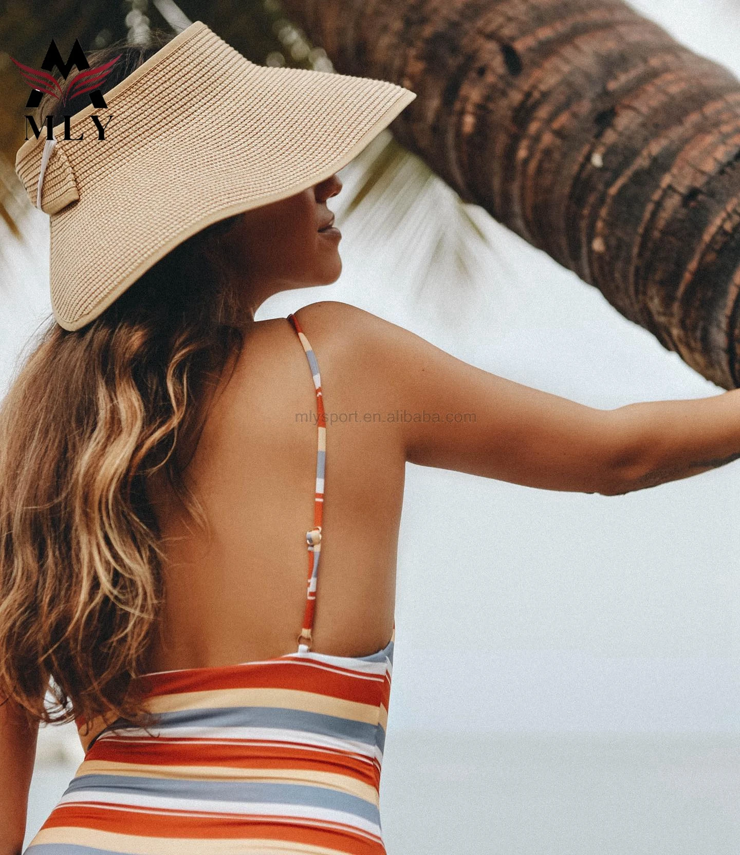 MLY Factory Wholesale Bikini Custom Sexy Bodysuit Jumpsuit Beachwear Backless Striped Print One Piece Swimwear