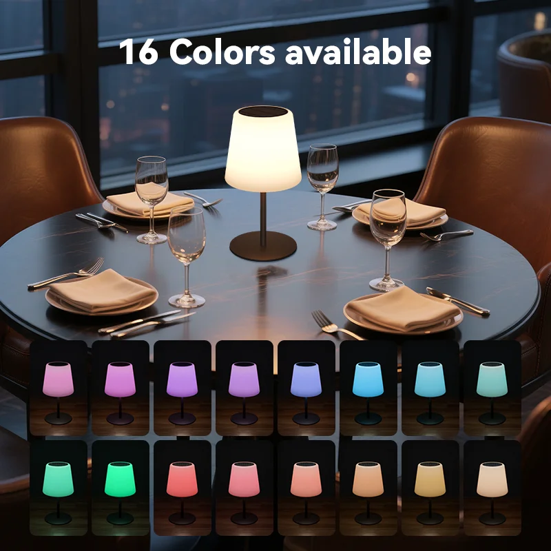 Lampe Solaire Exterieur 16 Couleurs, IP65 Etanche Pour Camping Jardin Terrasse, Rechargeable Par Panneau Solaire/Batterie/Type-C
