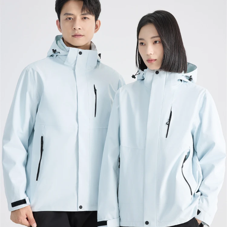 New Wholesale Custom Winter Men's Outdoor Hooded Waterproof Breathable Zipper Stand Collar Soft Shell Jacket for Mountaineering
