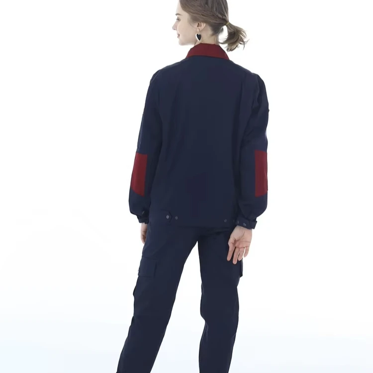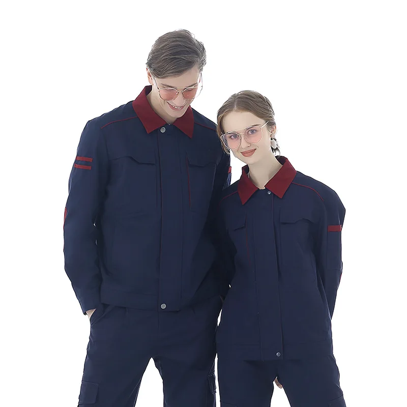 Classic Style Workwear Jacket Navy Red-Collar Durable Work Uniform Classic Workwear Jacket