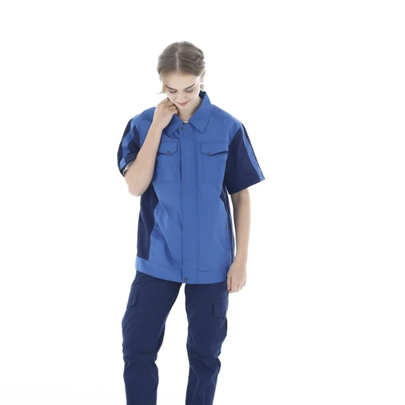 Summer Thin Short Sleeved Polyester High Tenacity Unisex Work Coverall for Auto Repair Mechanical and Electrical Factory Use