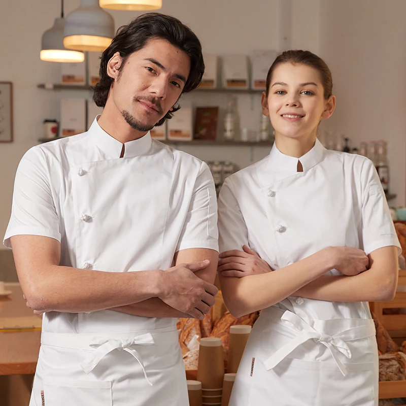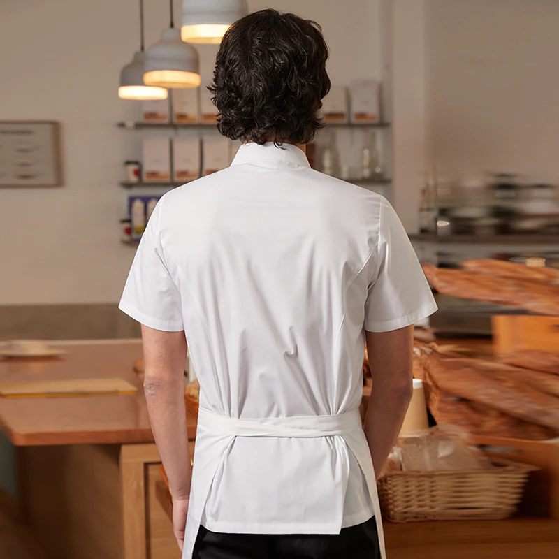 IBang Men's High-End Summer Short-Sleeved Chef Uniforms Polyester/Cotton Blend Custom Logo In-Stock for Restaurant & Bar Use