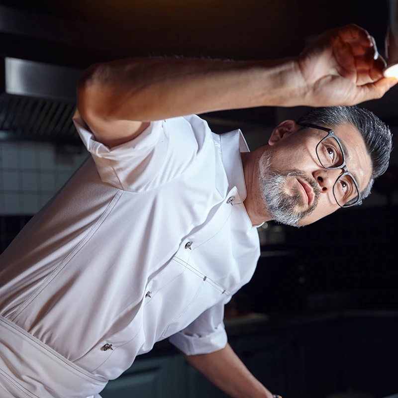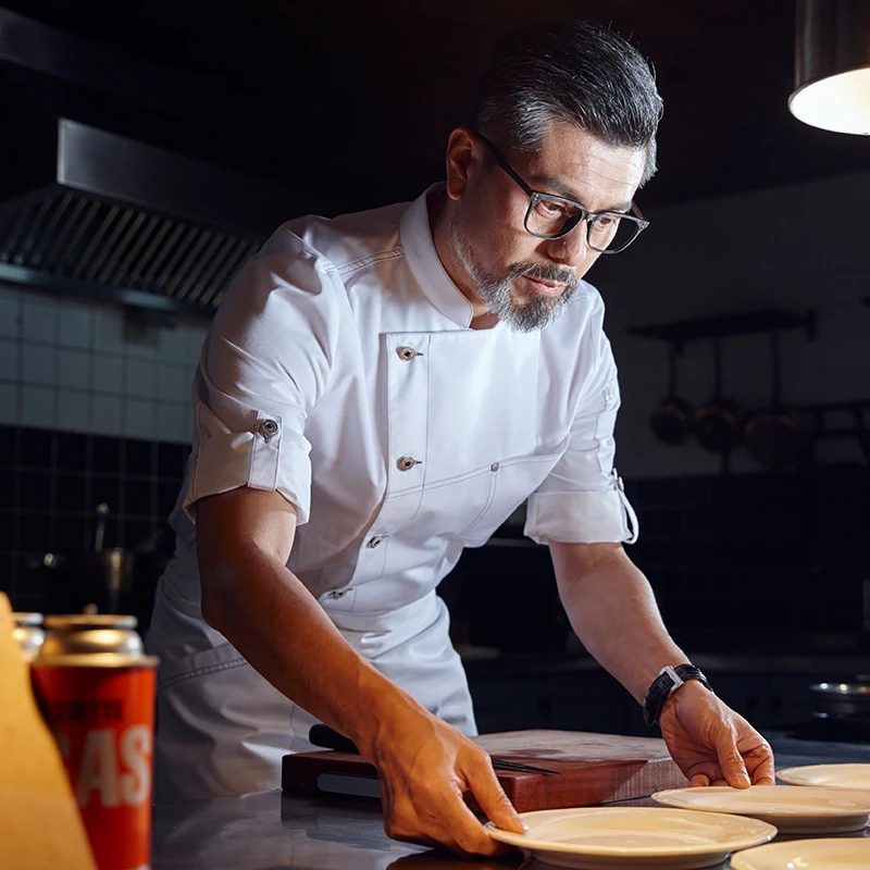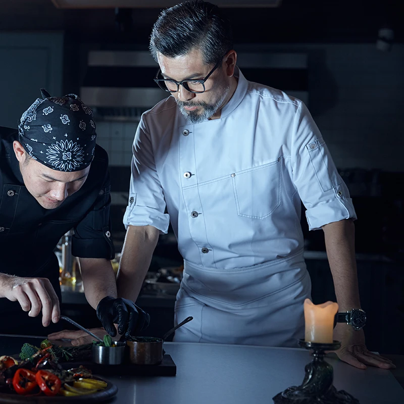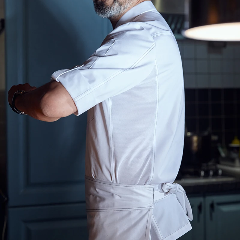 Veroyao 2026 Men's High-End Seven-Point Sleeve Woven Polyester/Cotton Restaurant Bar Uniforms Thermal Transfer Printing New