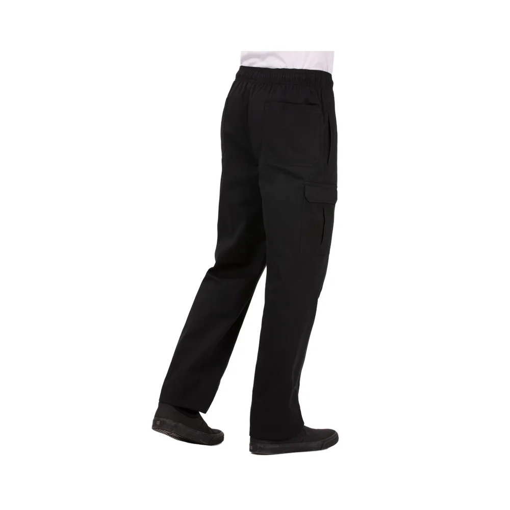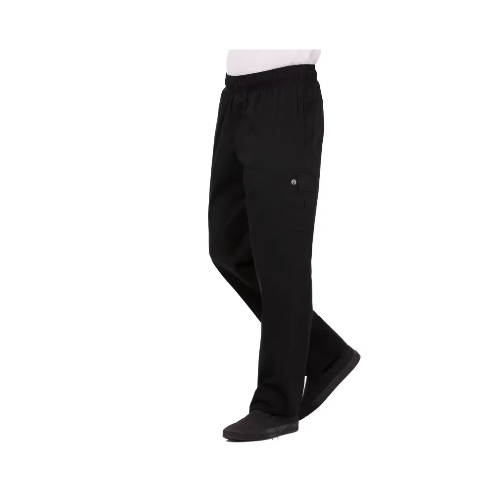 Universal Lightweight Breathable Black Kitchen Work Pants Anti-Pilling Drawstring Closure Elastic Waist Casual Loose Straight