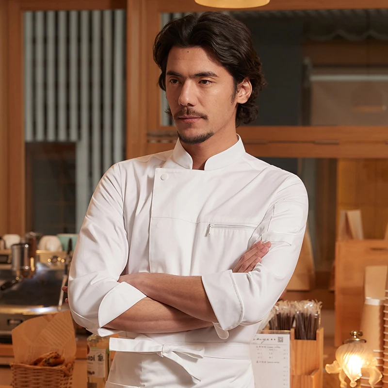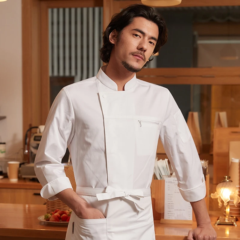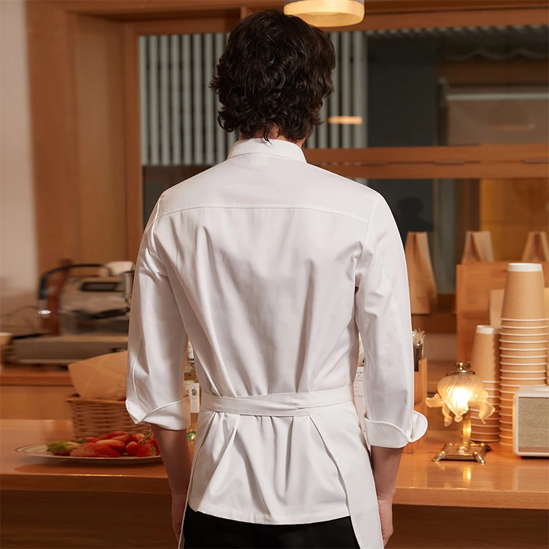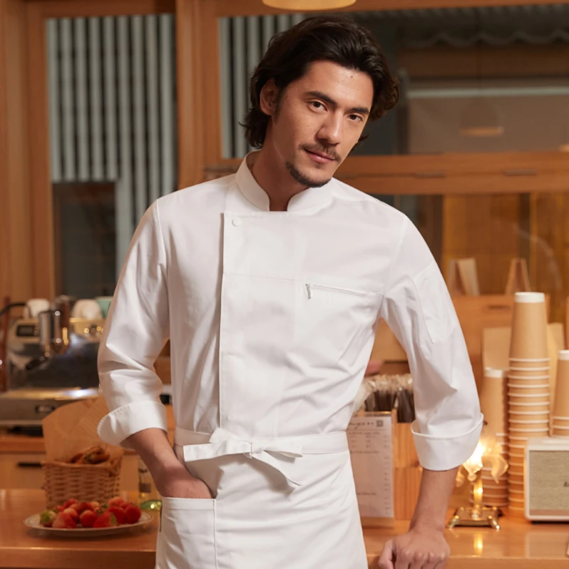 CHUYIBANG High-End Kitchen Aprons Long Sleeve Chef Kitchen Suit New Restaurant Bar Uniforms in Canvas Fabric