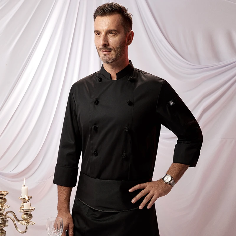 Zhenyao High-End Men's Elegant Bar and Restaurant Uniforms Long Sleeve Chef Clothes for Autumn Winter for Hotels and Kitchens
