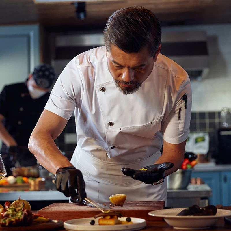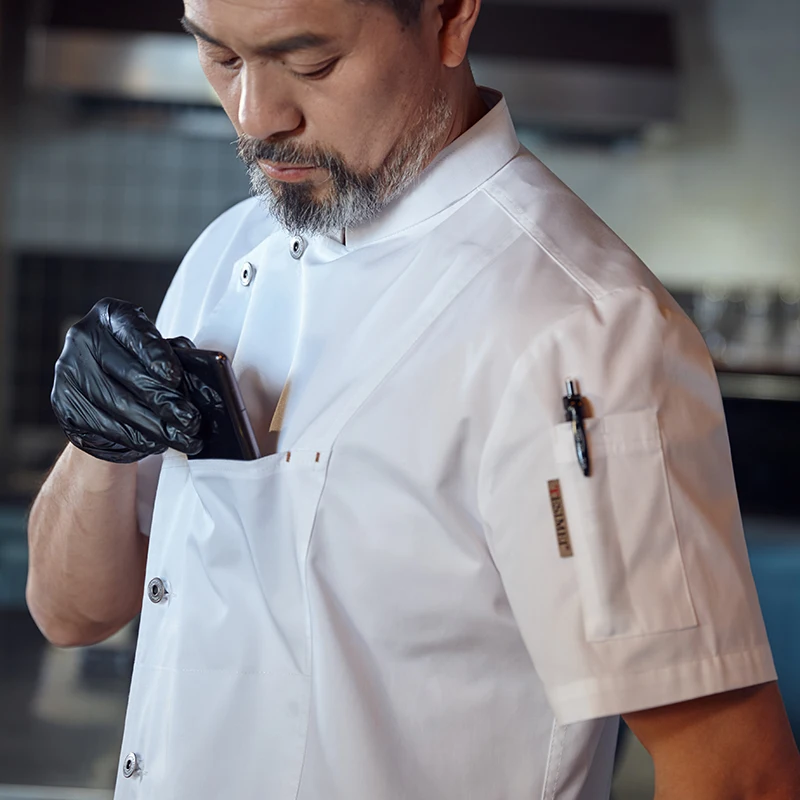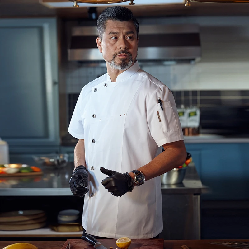 Summer High-End Men's Short-Sleeved Chef Workwear New Kitchen Clothes Made of Woven Twill Fabric for Hotel & Restaurant Baking