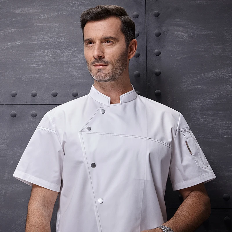 Men's Breathable Short-Sleeved Chef's Uniform for Western Restaurant Baking Pastry Kitchen Workwear Hotel Accessory