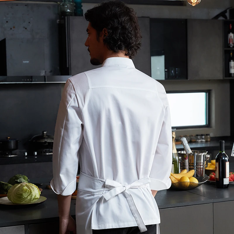 Tesimei Men's Long Sleeve Chef Work Clothes for Summer New Western Restaurant Hotel Canteen Kitchen Top Restaurant Bar Uniforms