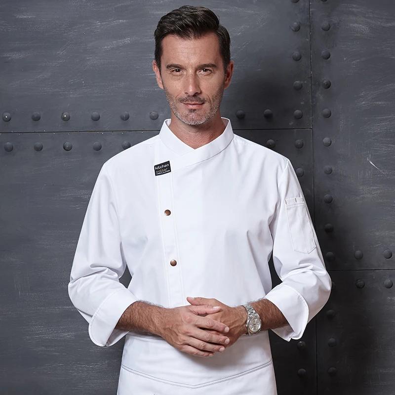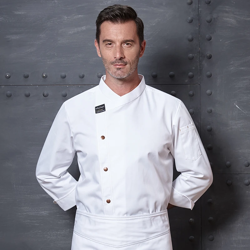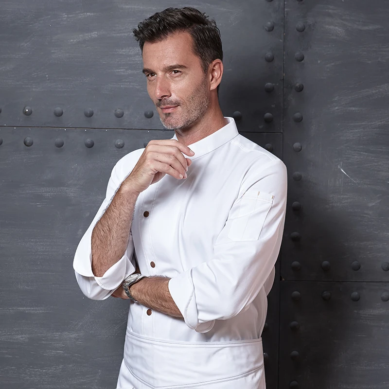 Customizable Men's Long Sleeve Leather Chef Overalls Upscale Kitchen Clothing Back Support for Restaurant Hotel Kitchen Use