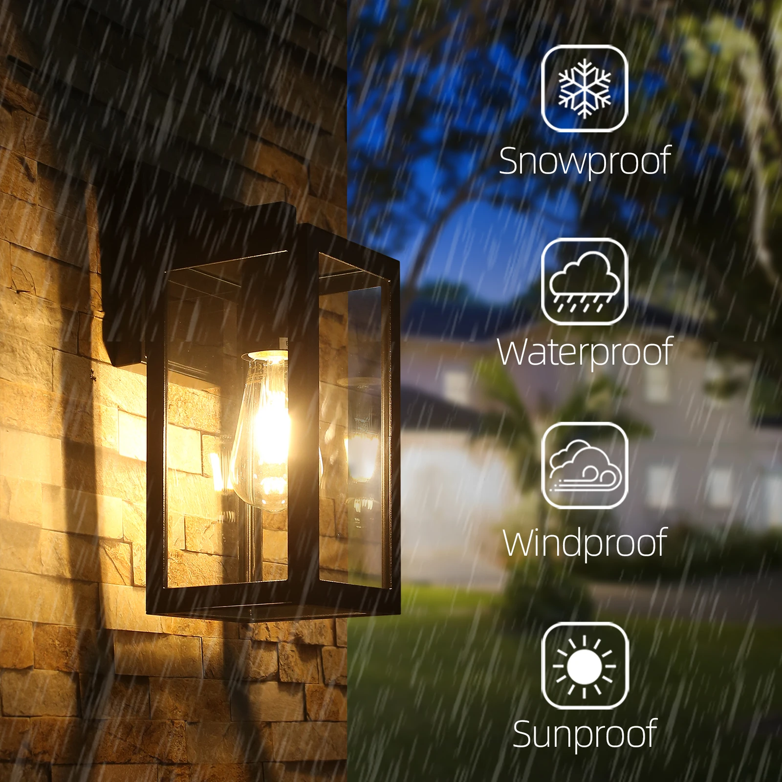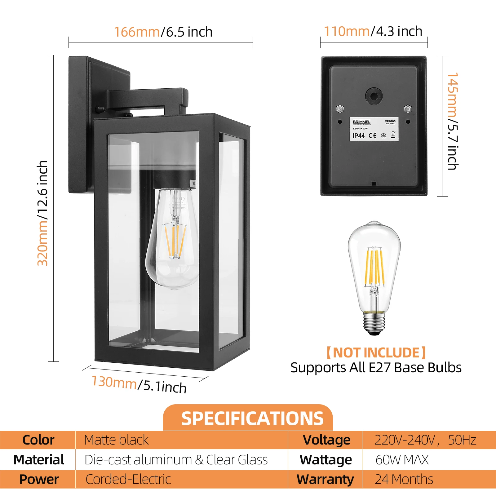 Vertak Square LED Lamp with E27 Base IP44 Waterproof Outdoor Wall Light Aluminum Material for Balcony Aisle Street Garden Glass