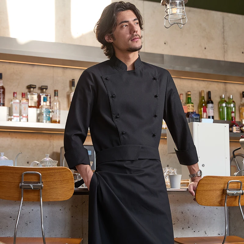 Tesimei High-End Summer Tops Long Sleeve Men's Restaurant Kitchen Suit Canvas Fabric Chef Uniforms Black Polyester/Cotton